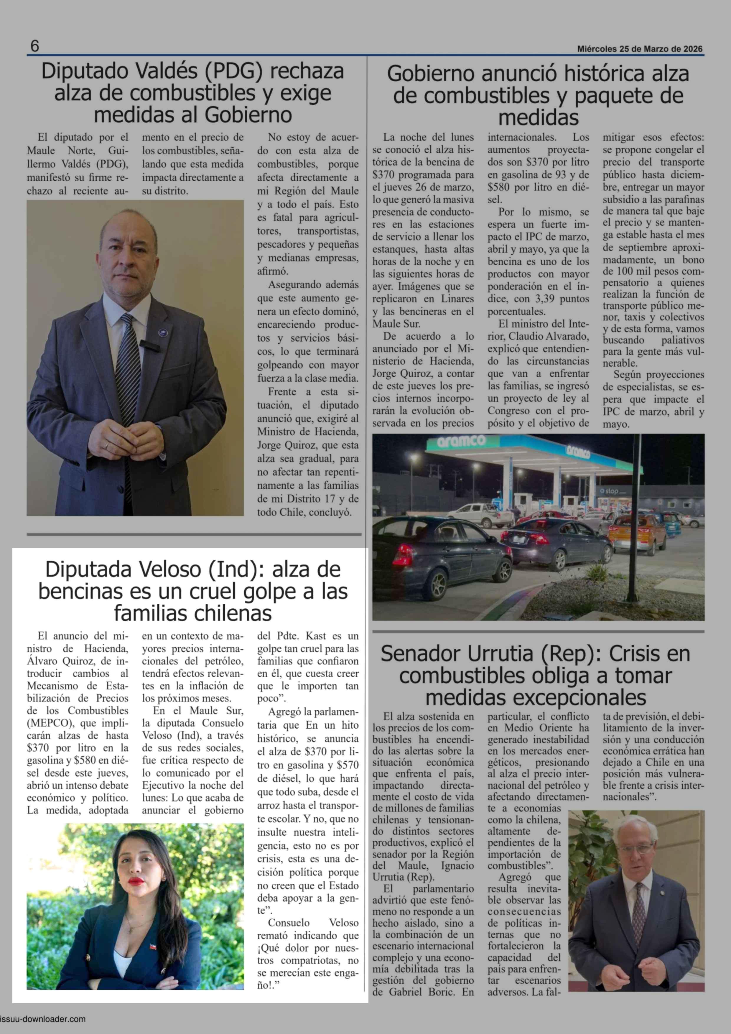 Título: Diputada Veloso (Ind): alza de bencinas es un cruel golpe a las familias chilenas