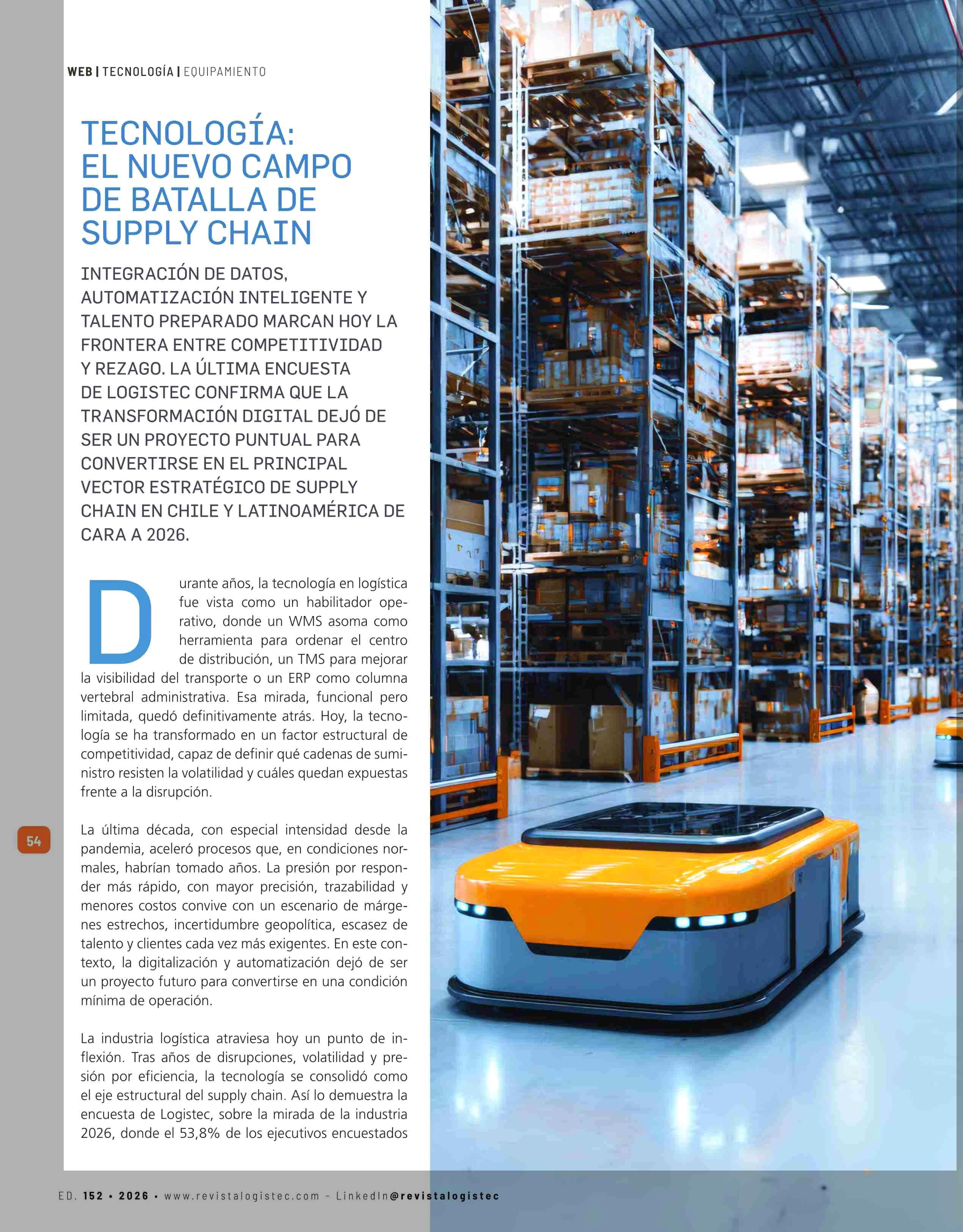 TECNOLOGÍA: EL NUEVO CAMPO DE BATALLA DE SUPPLY CHAIN 20-02-2026 Revista Logistec |