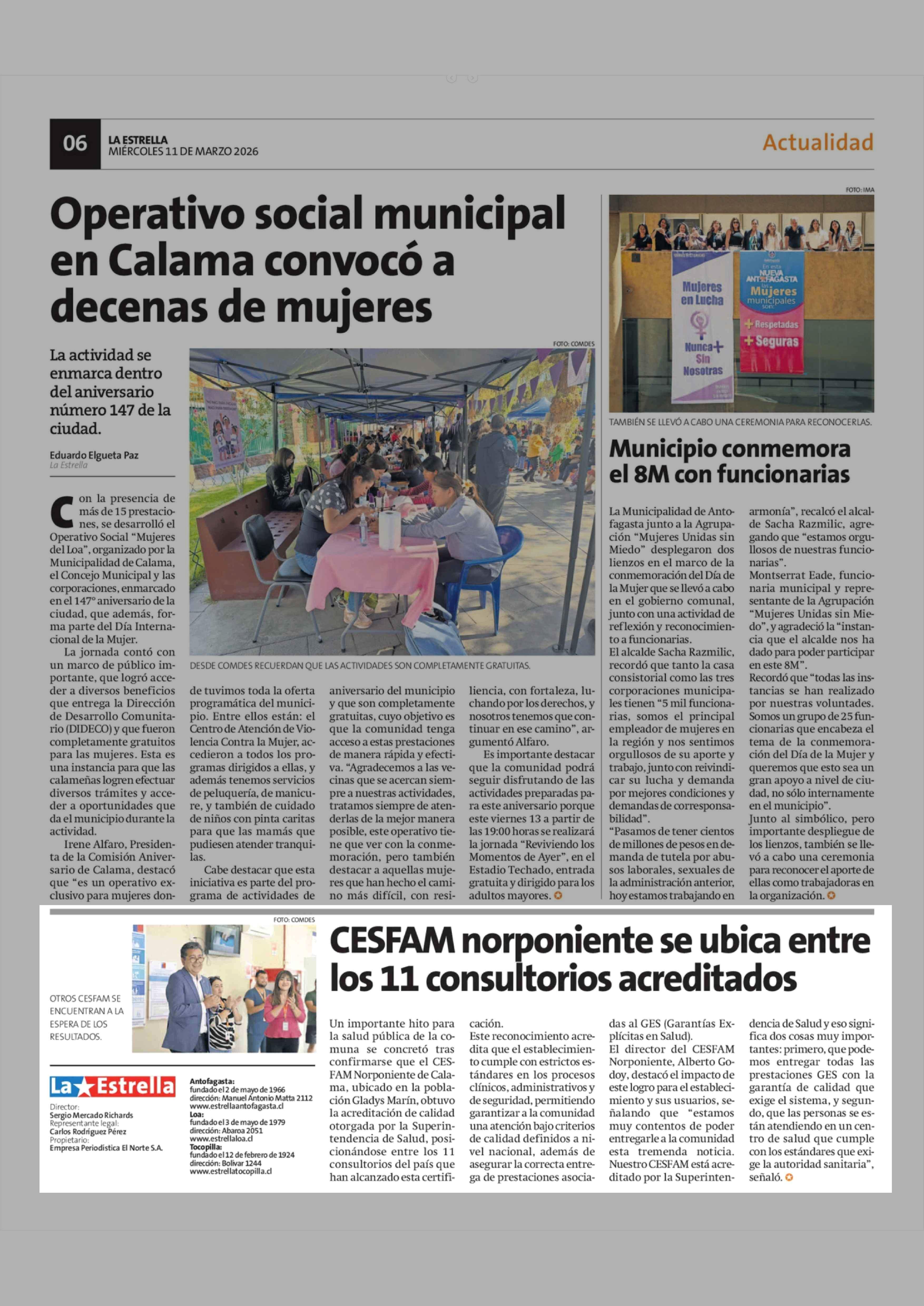 CESFAM norponiente se ubica entre los 11 consultorios acreditados 11-03-2026 La Estrella de Antofagasta |