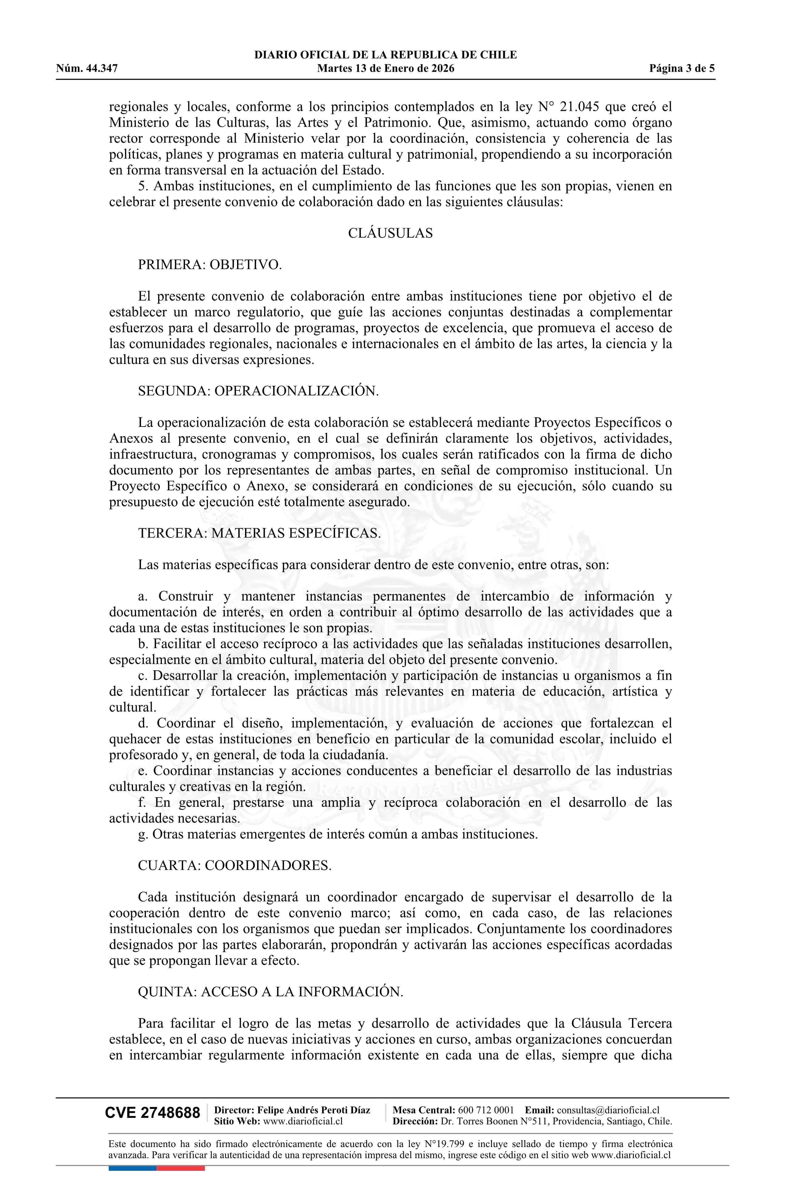 Título: Resolución exenta número 27, de 2025.- Aprueba Convenio marco de cooperación suscrito entre el Ministerio de las Culturas, las Artes y el Patrimonio de Chile y la Organización de Estados Iberoamericanos para la Educación, la Ciencia y la Cultura