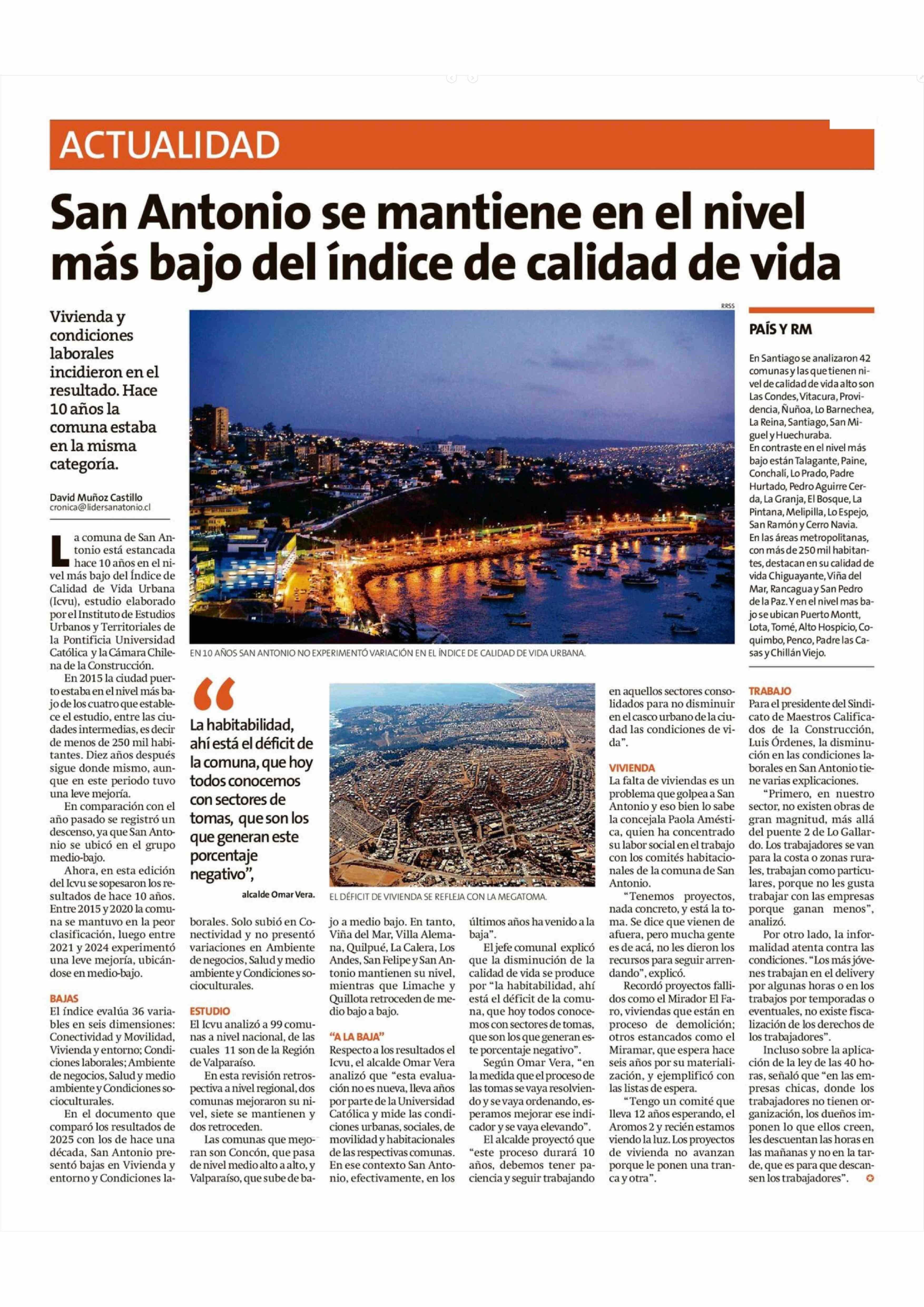 Título: San Antonio se mantiene en el nivel más bajo del índice de calidad de vida