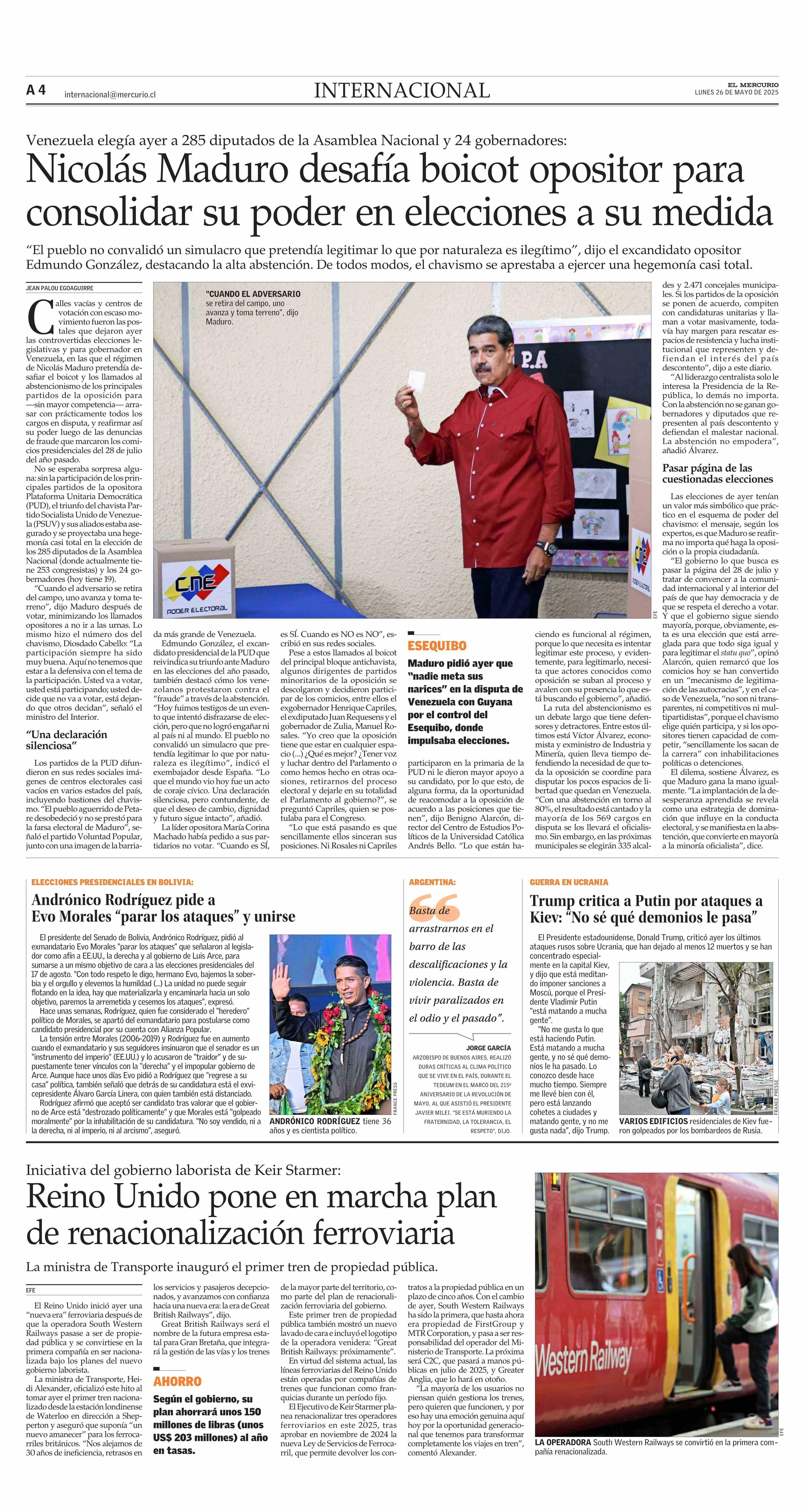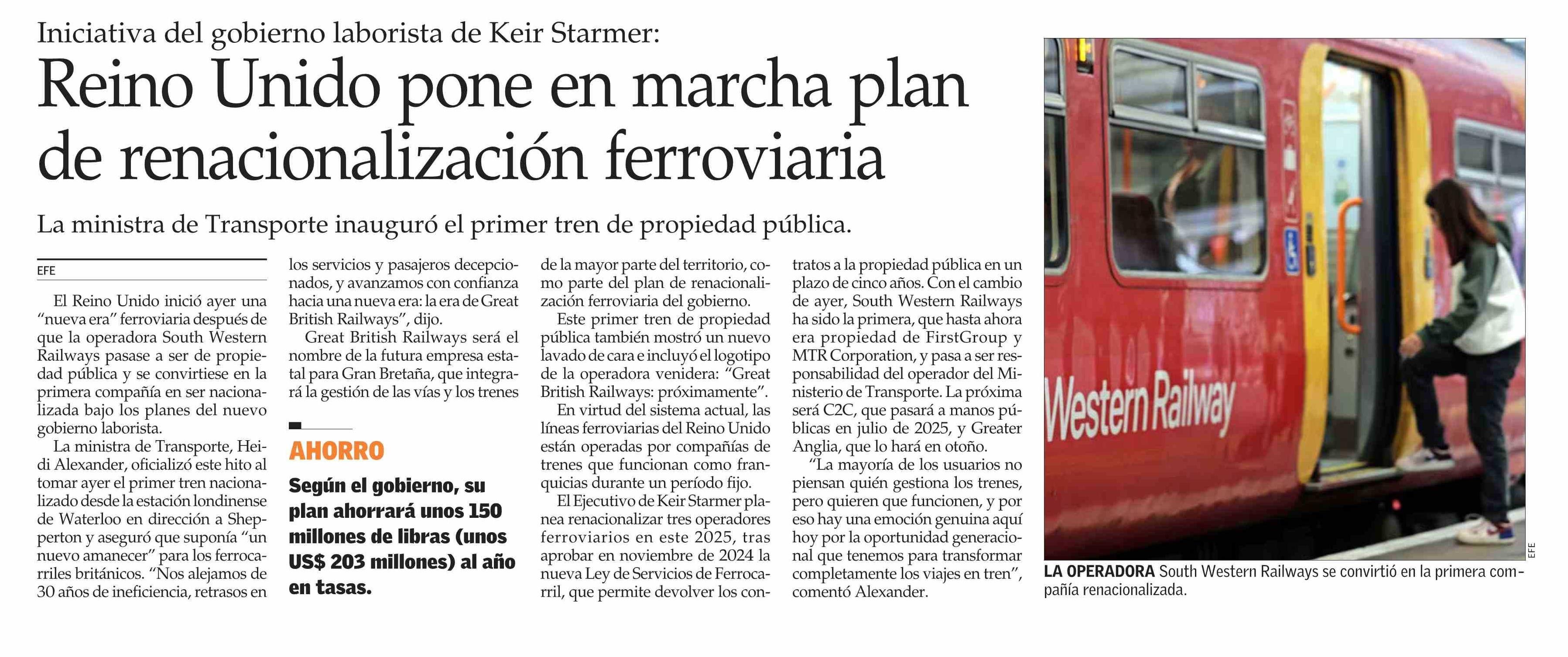 Reino Unido pone en marcha plan de renacionalización ferroviaria 26-05-2025 El Mercurio |
