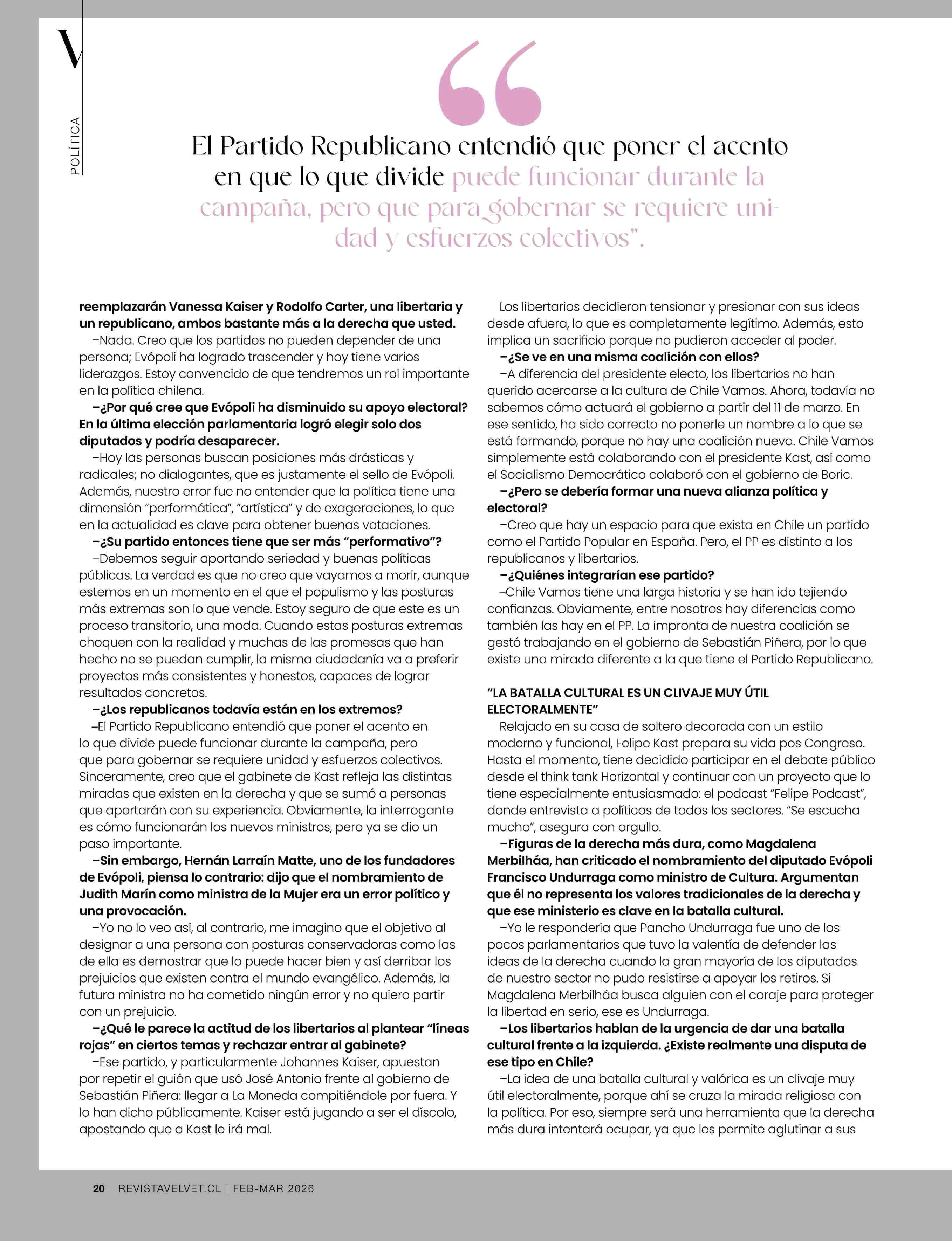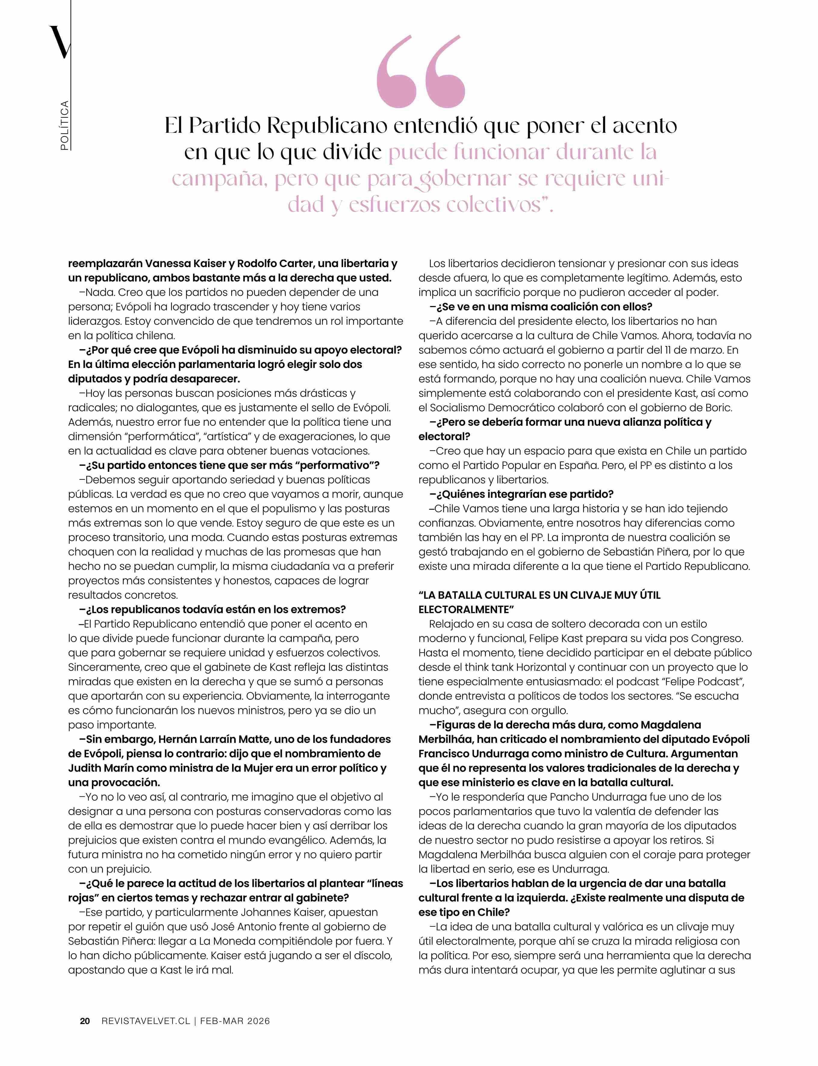FELIPE KAST 02-03-2026 Revista Velvet |