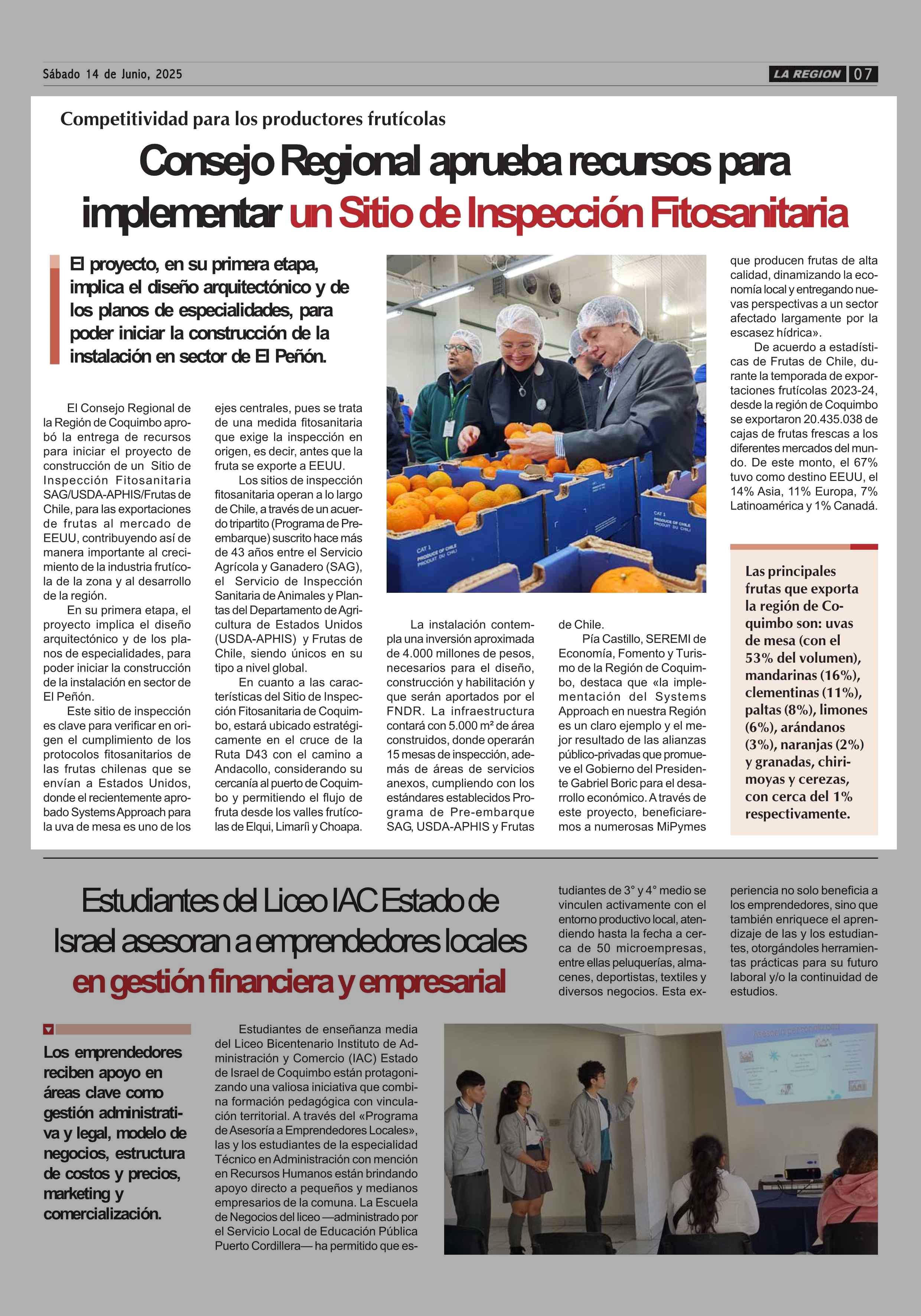 Consejo Regional aprueba recursos para implementar un Sitio de Inspección Fitosanitaria 14-06-2025 Diario la Región |