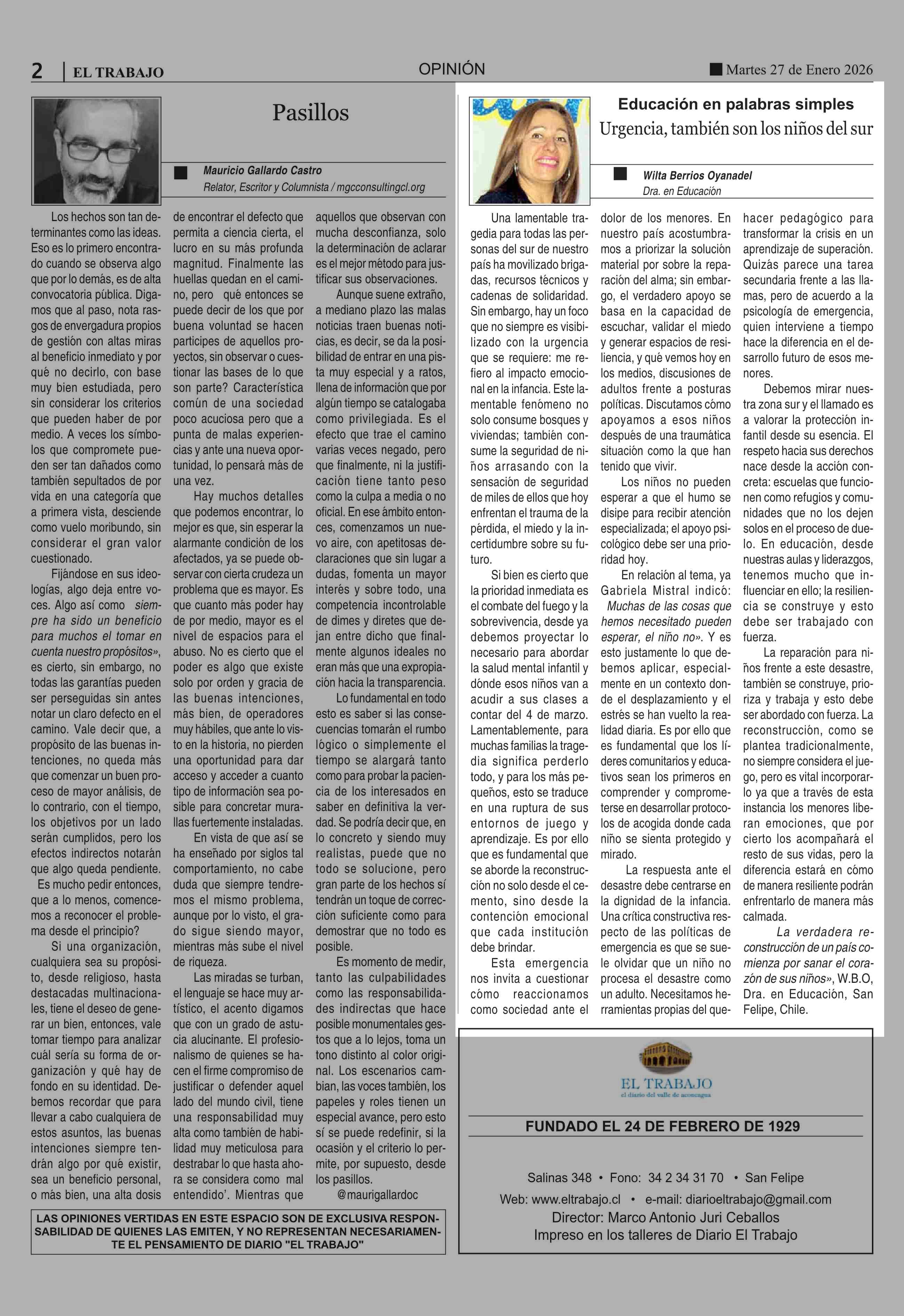 Fecha: 27-01-2026 Sector: Columnas de Opinión Región: Región de Valparaíso