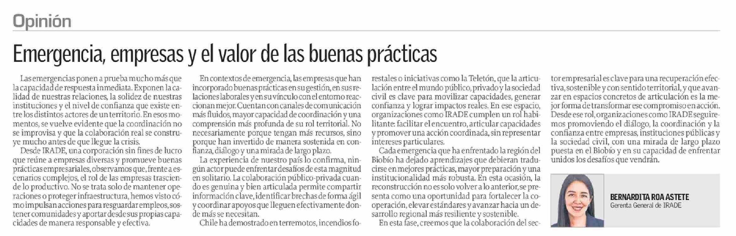 Columnas de Opinión: Emergencia, empresas y el valor de las buenas prácticas 08-02-2026 El Sur |
