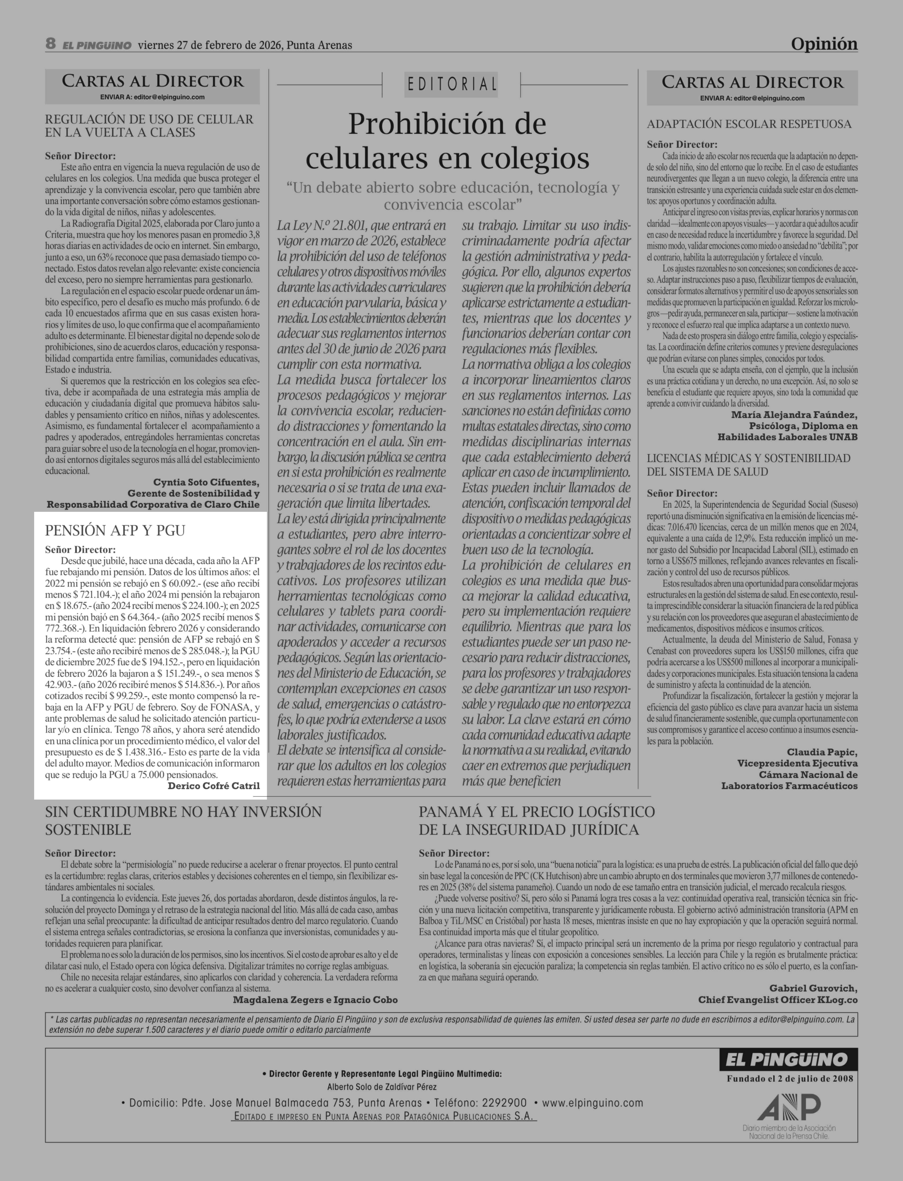 Título: Cartas: PENSIÓN AFP Y PGU