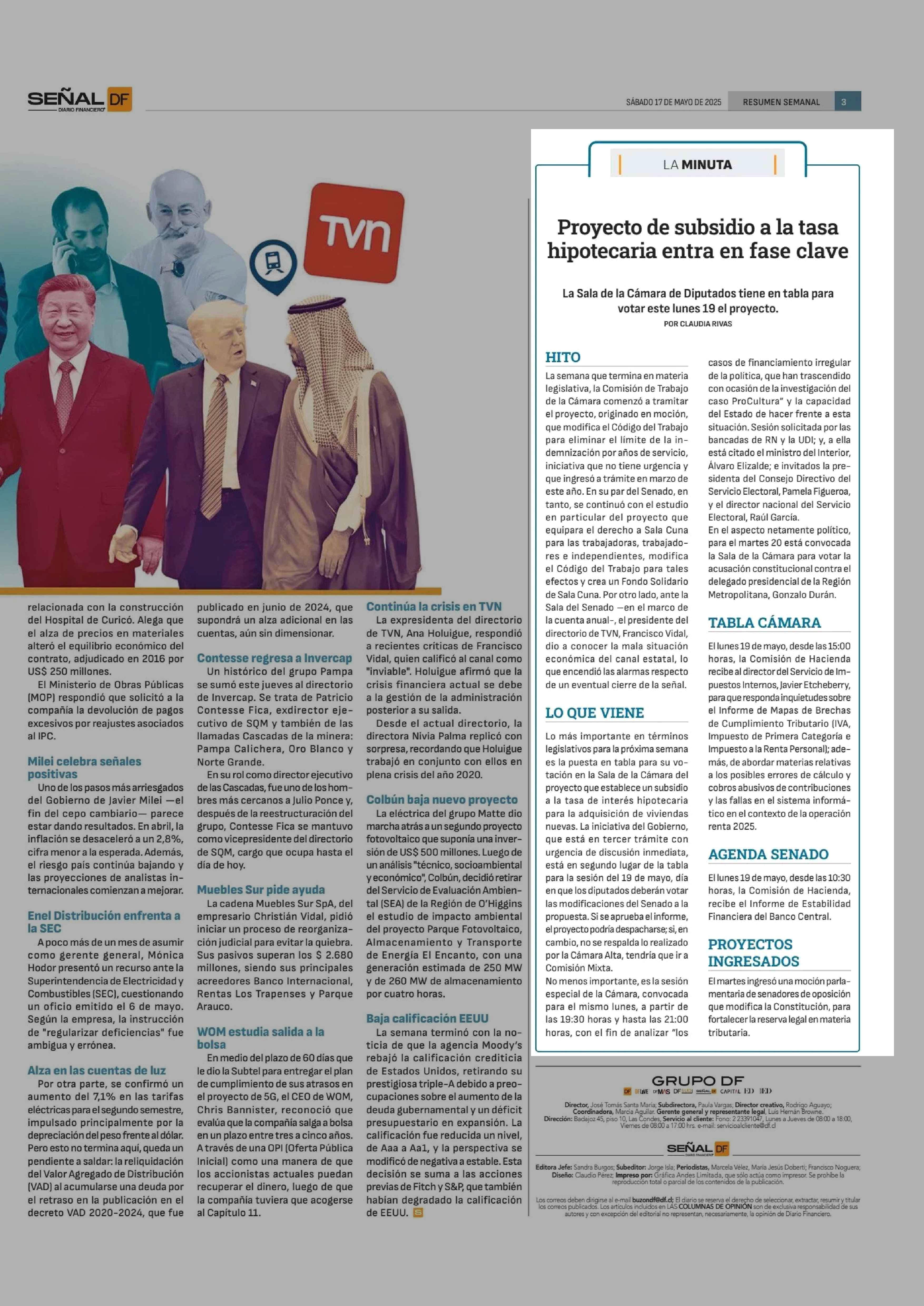 Proyecto de subsidio a la tasa hipotecaria entra en fase clave 17-05-2025 Diario Financiero |