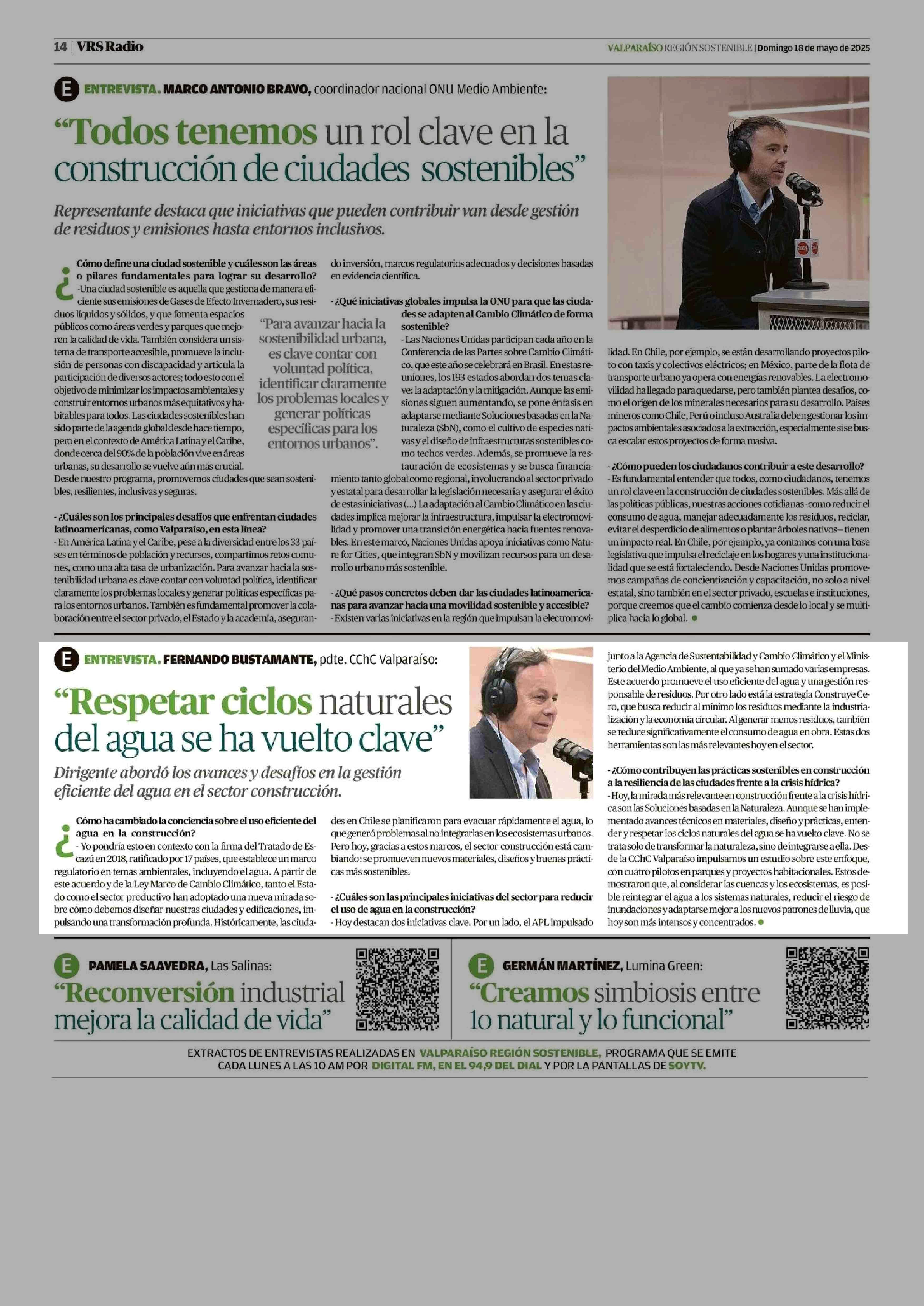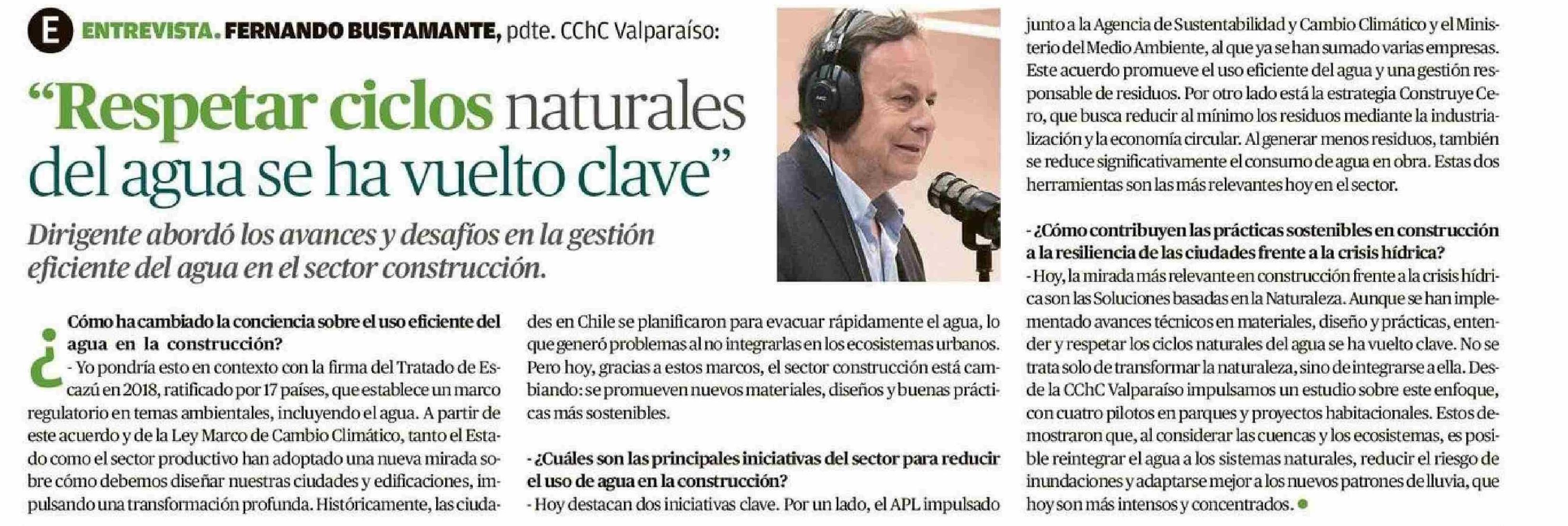 “Respetar dclos naturales del agua se ha vuelto clave” 18-05-2025 El Mercurio de Valparaíso |