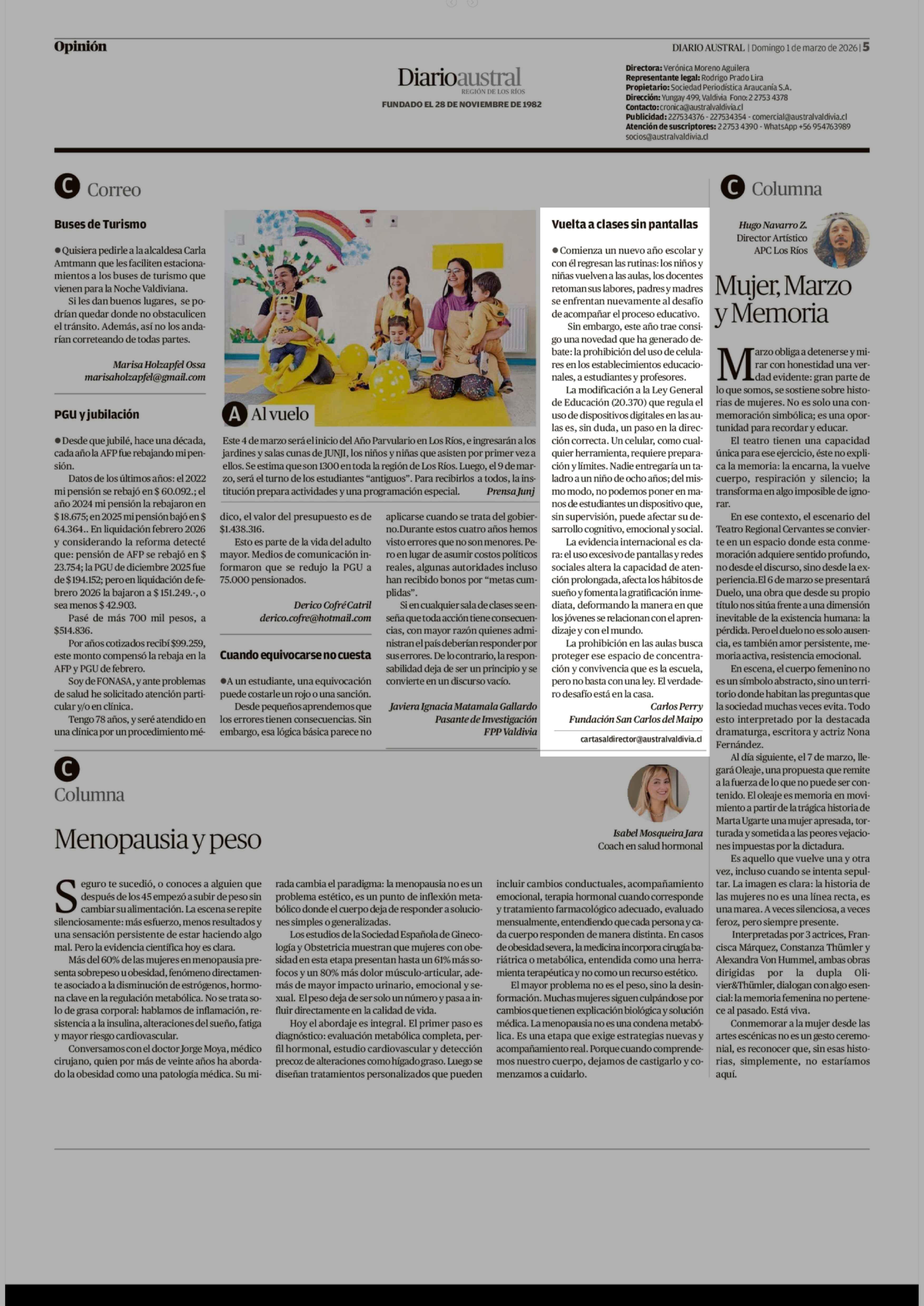 Sin asignar 01-03-2026 Diario Austral Región de Los Ríos |