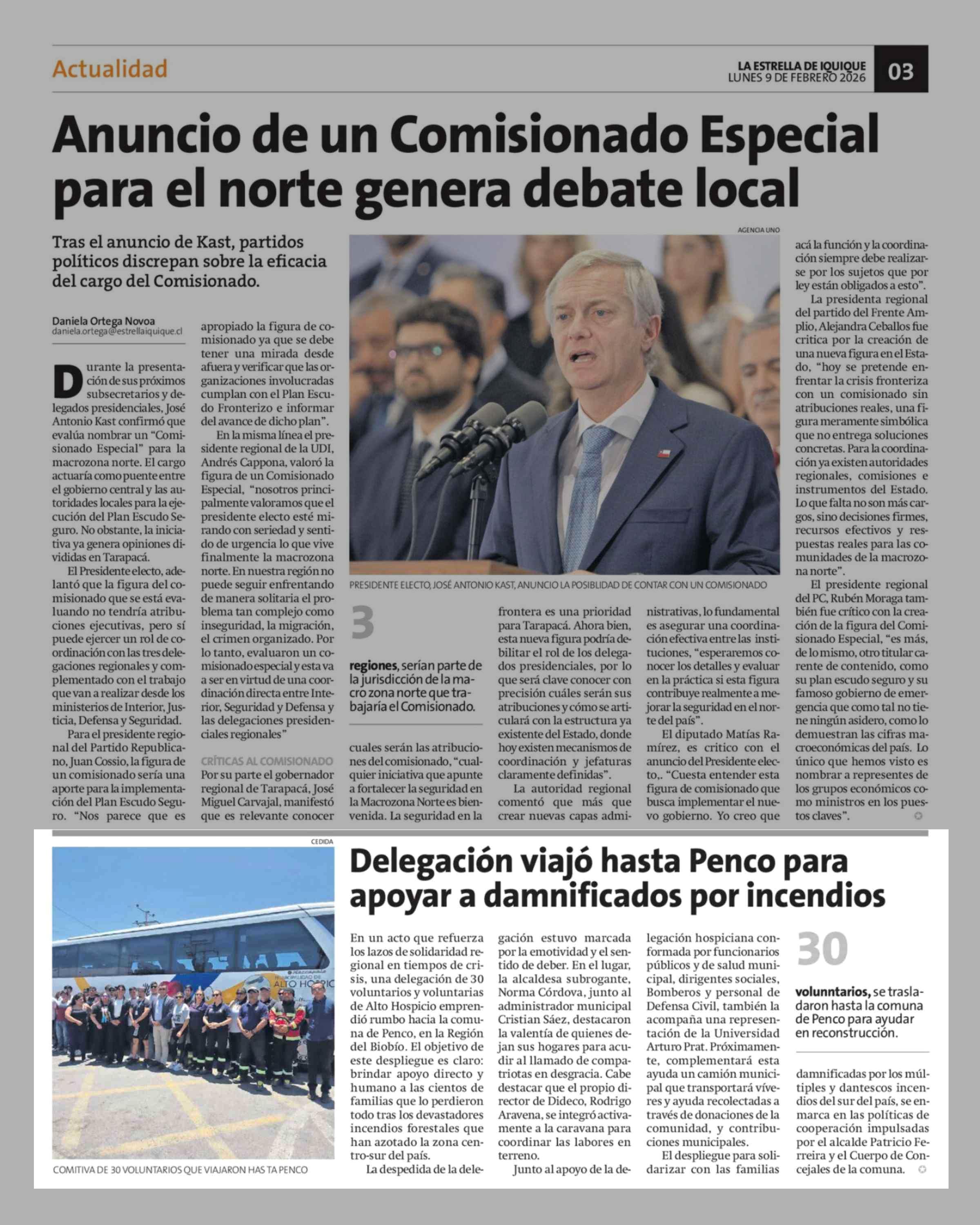 Delegación viajó hasta Penco para apoyar a damnificados por incendios 09-02-2026 La Estrella de Iquique |