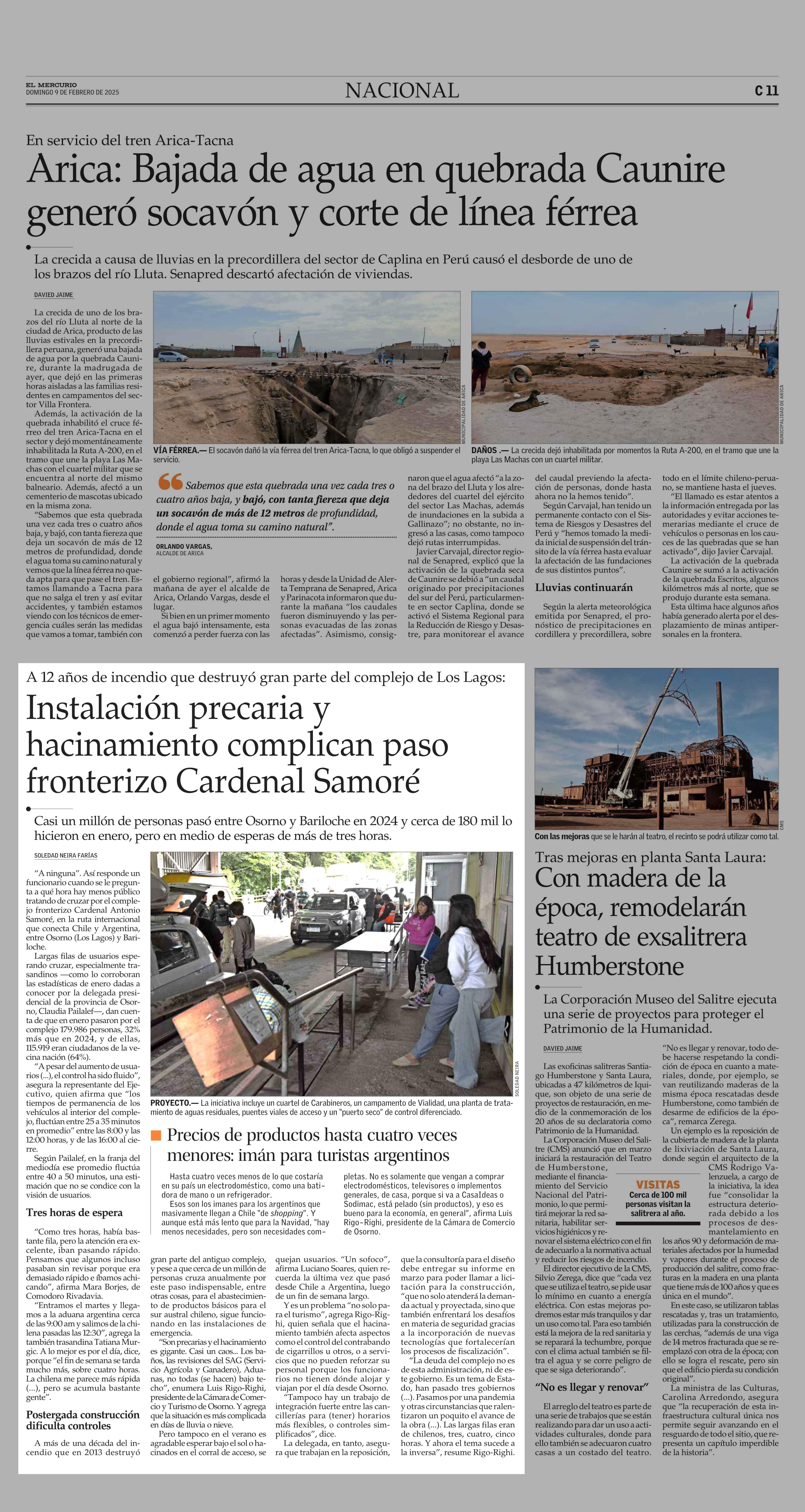 Instalación precaria y hacinamiento complican paso fronterizo Cardenal Samoré 09-02-2025 El Mercurio |
