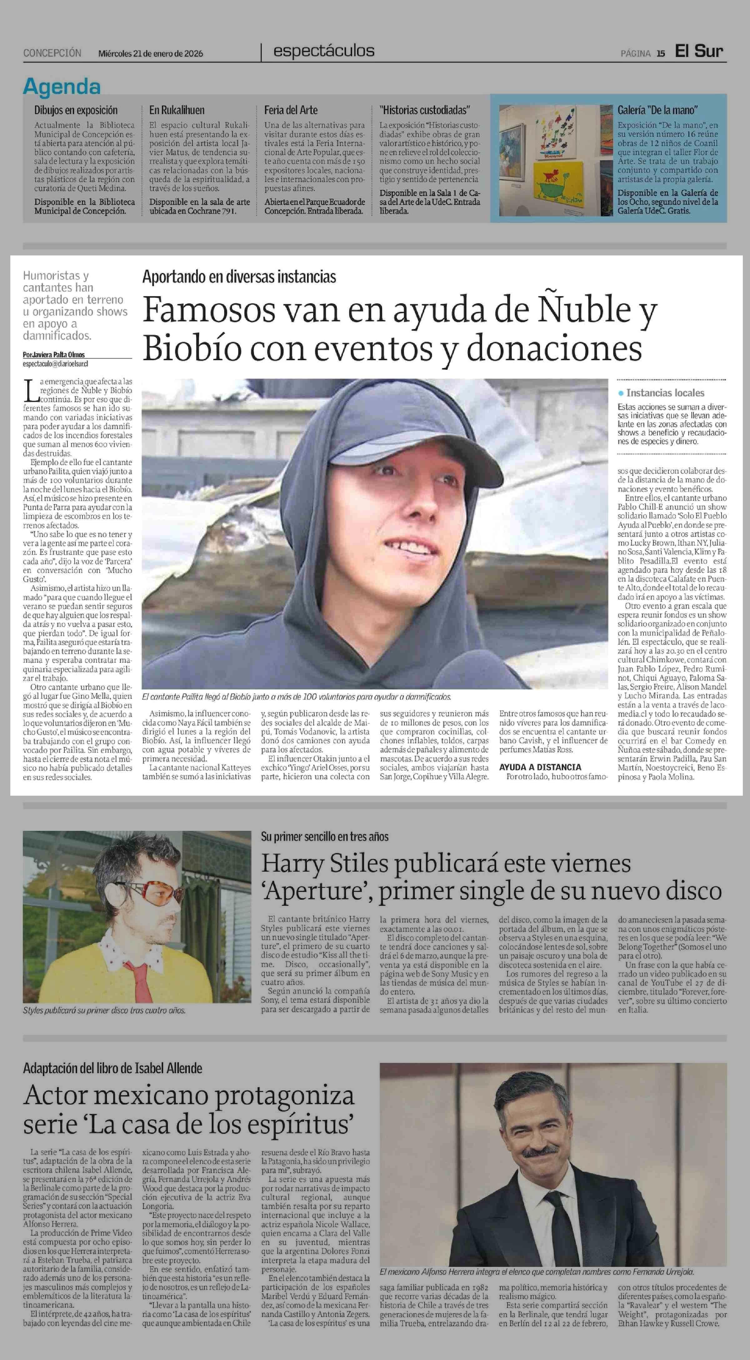 Famosos van en ayuda de Nuble y Biobío con eventos y donaciones 21-01-2026 El Sur |