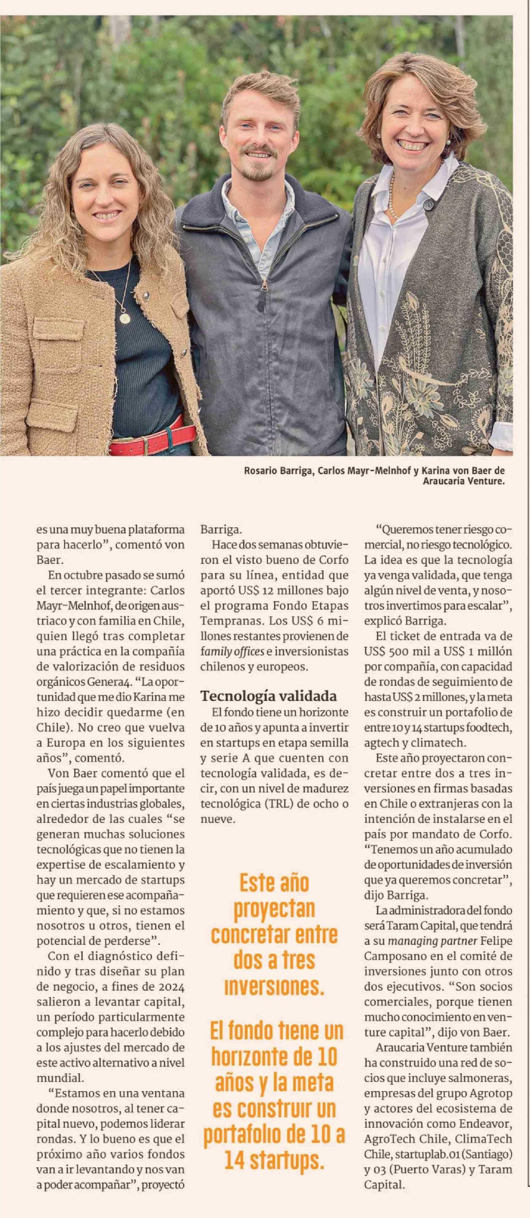 Desde Temuco Araucaria Venture levanta su primer fondo de inversión para startups tecnológicas 06-04-2026 Diario Financiero |