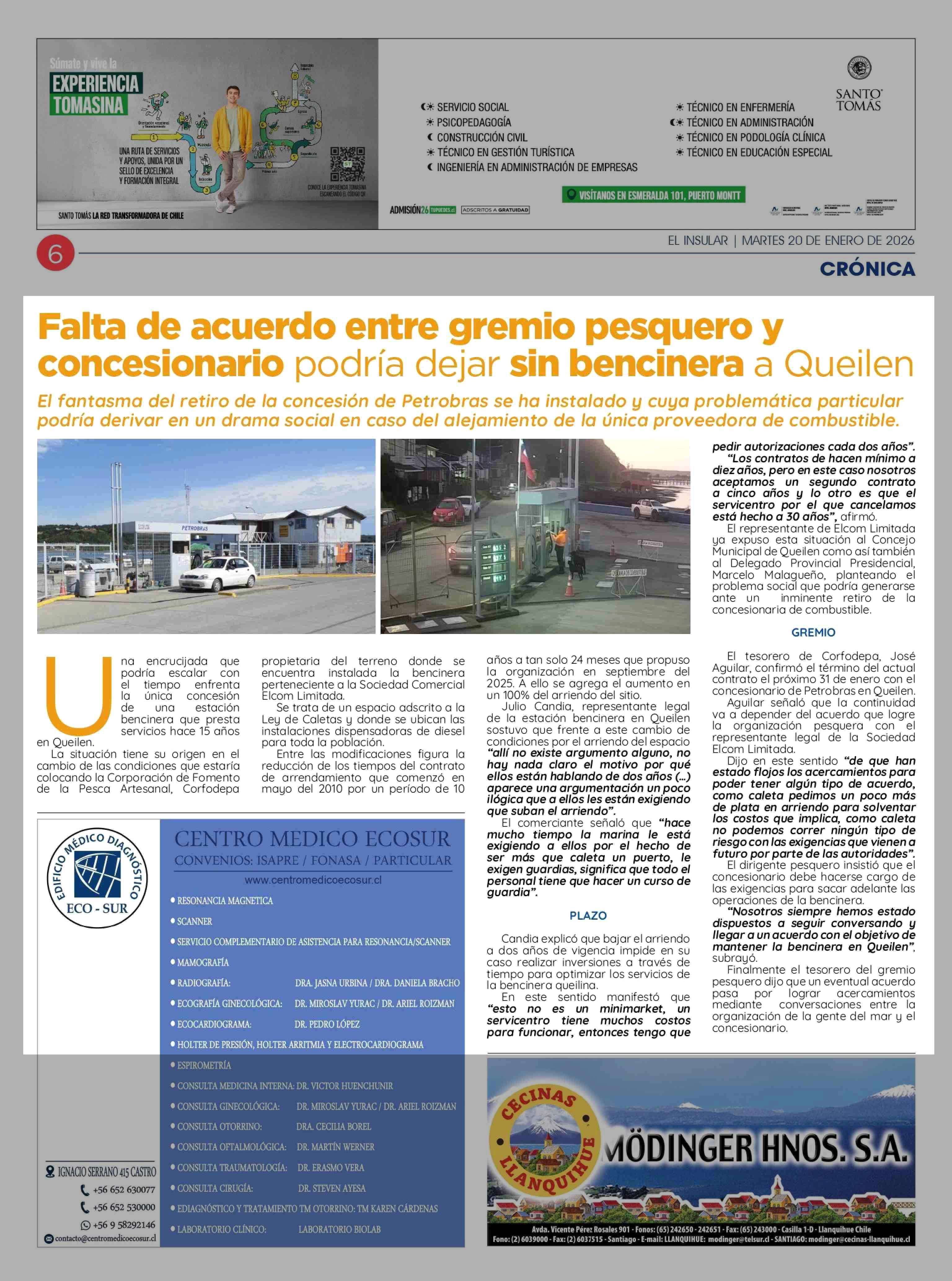 Falta de acuerdo entre gremio pesquero y concesionario podría dejar sin bencinera a Queilen 20-01-2026 El Insular |