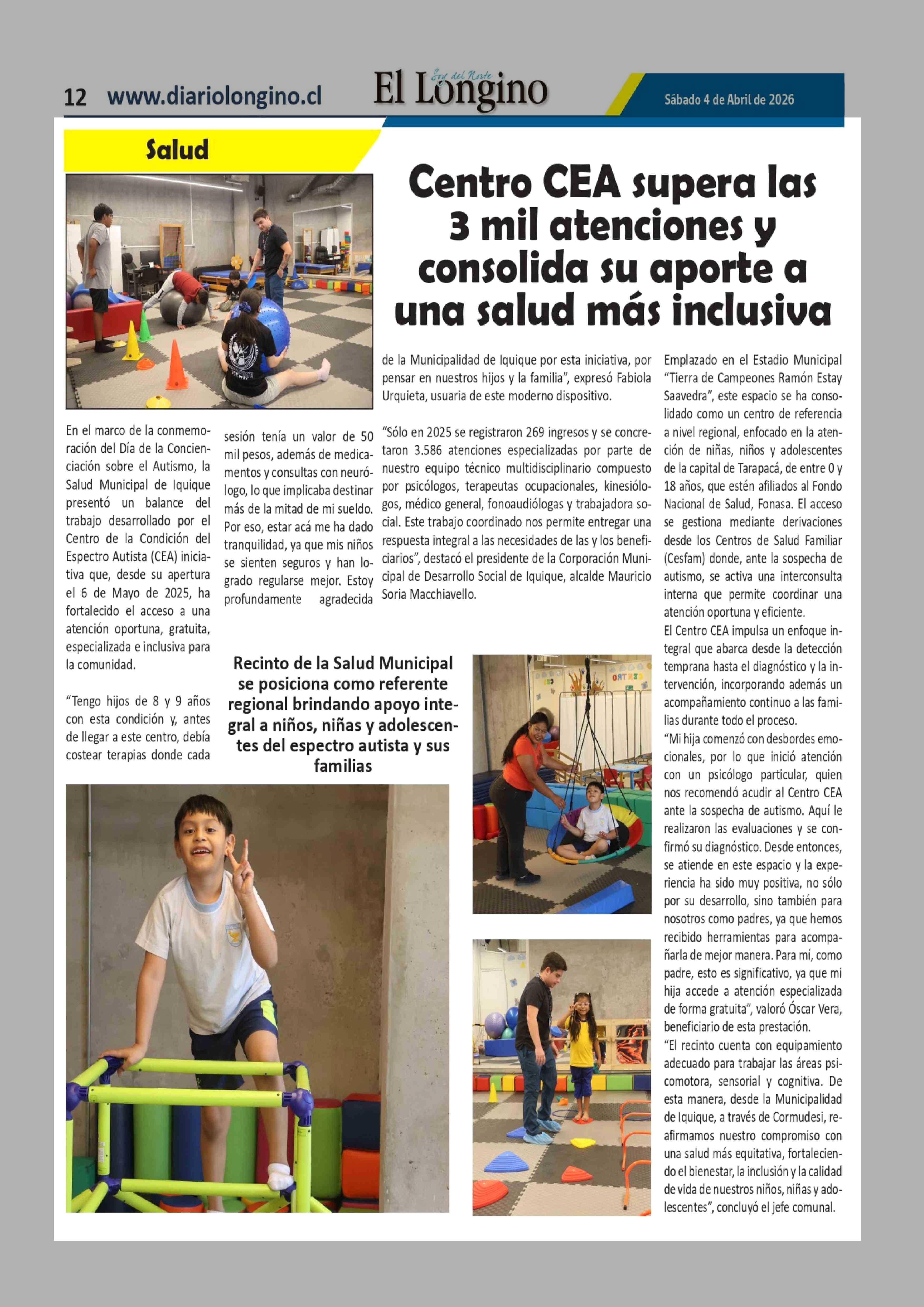 Título: Centro CEA supera las 3 mil atenciones y consolida su aporte a una salud más inclusiva
