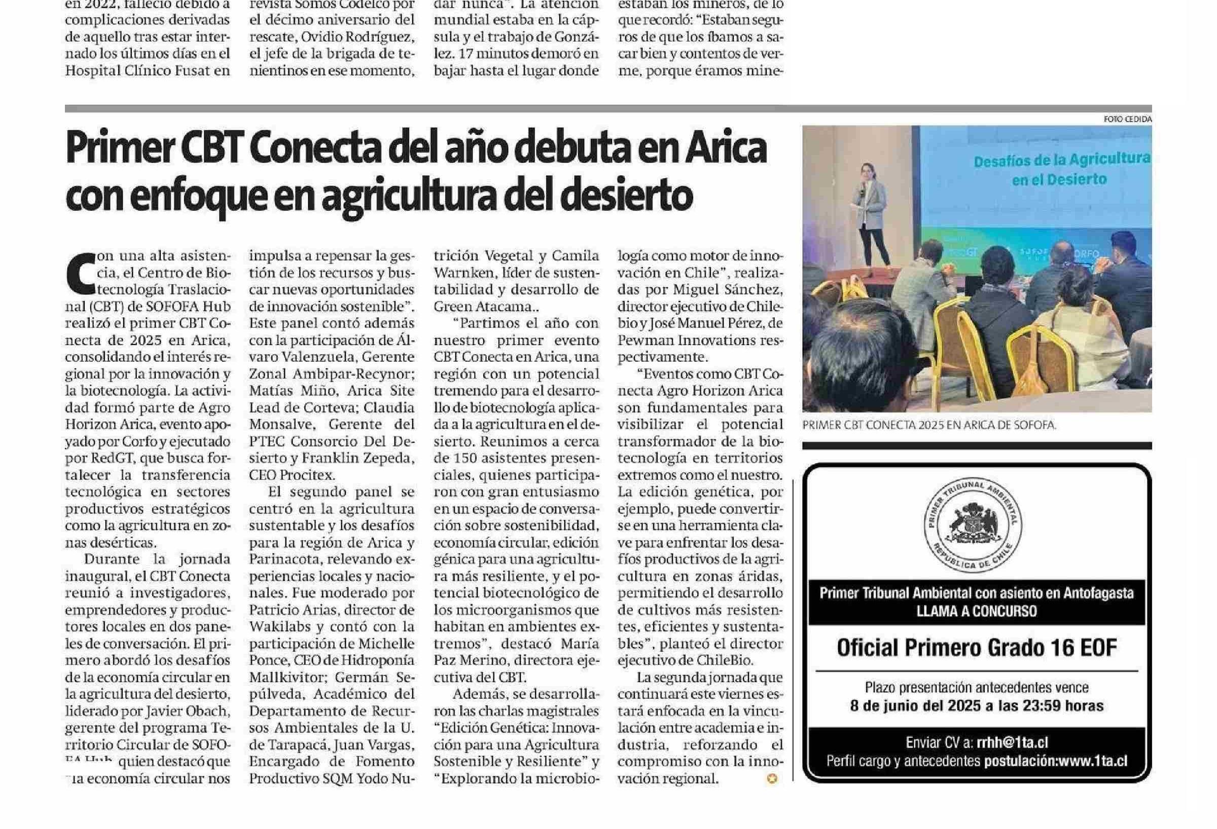 Primer CBT Conecta del año debuta en Arica con enfoque en agricultura del desierto 02-06-2025 La Estrella de Arica |