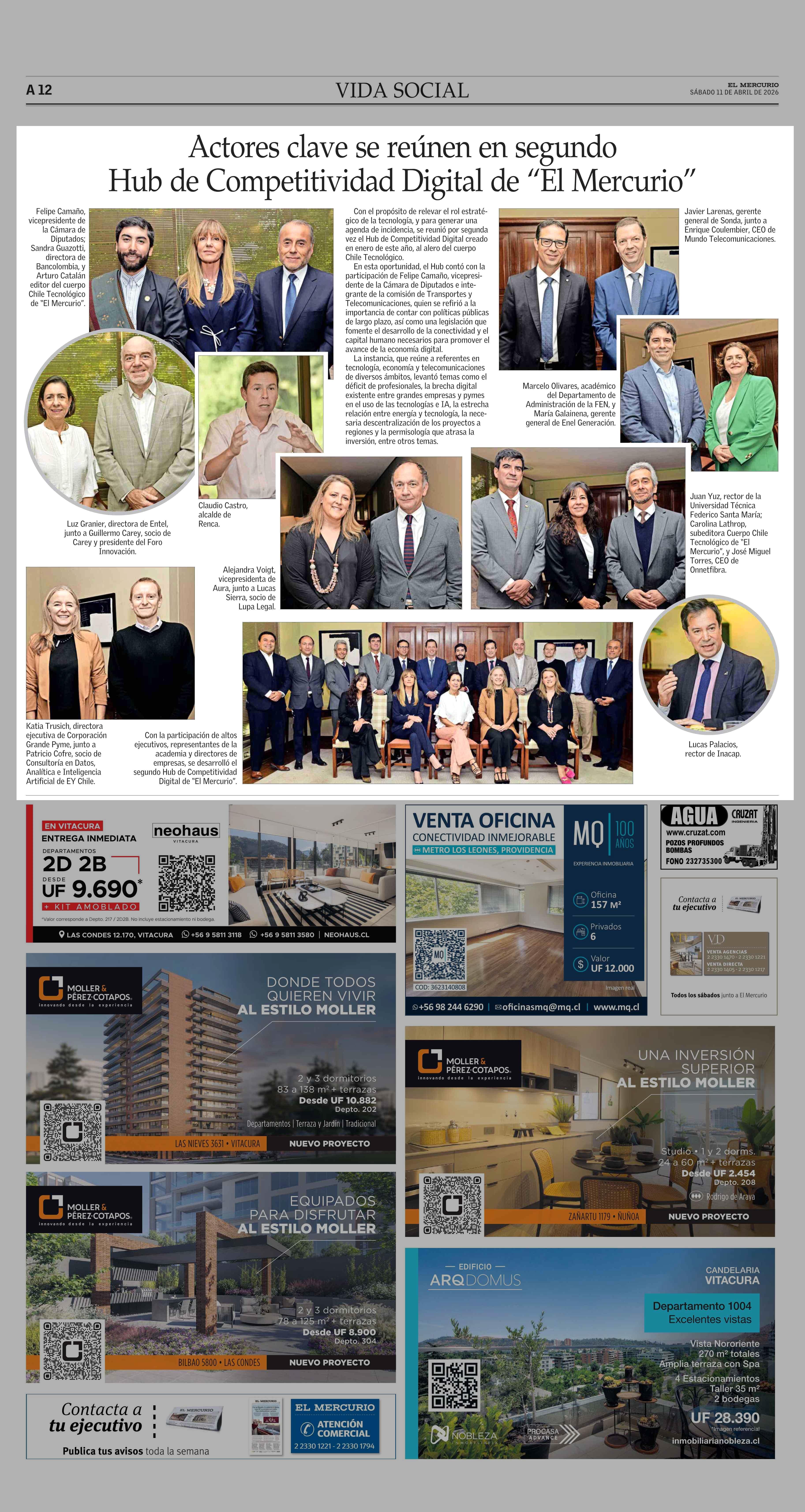 Actores clave se reúnen en segundo Hub de Competitividad Digital de “El Mercurio” 11-04-2026 El Mercurio |