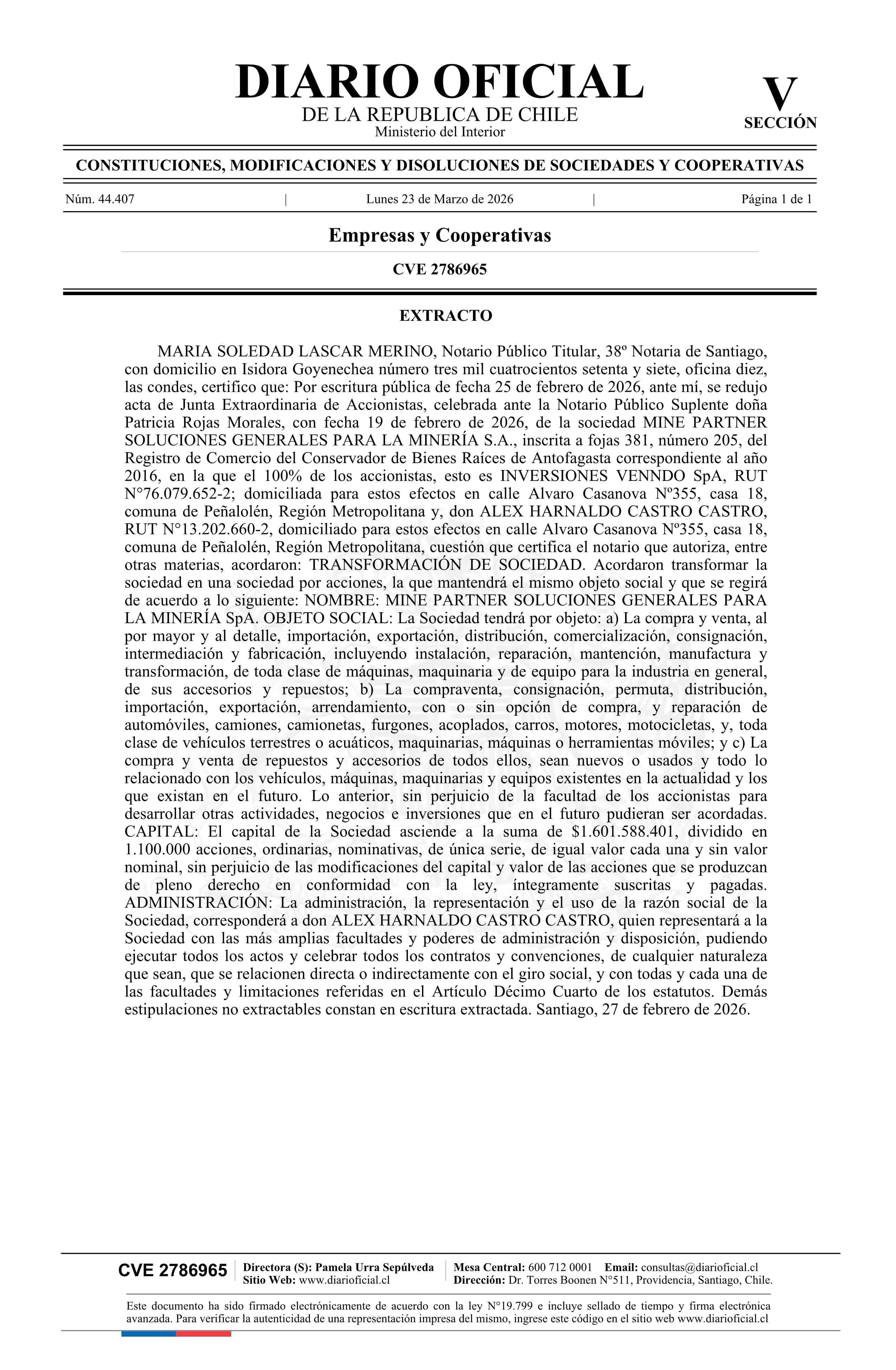 Título: Mine Partner Soluciones Generales para la Minería S.A. 76.083.165-4