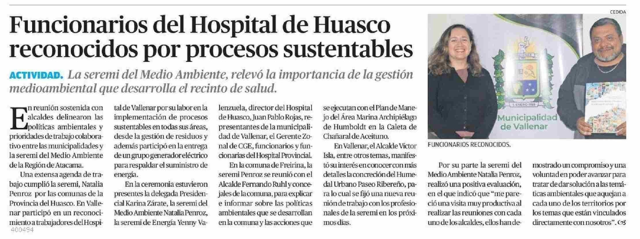 Funcionarios del Hospital de Huasco reconocidos por procesos sustentables 03-05-2025 El Diario de Atacama |