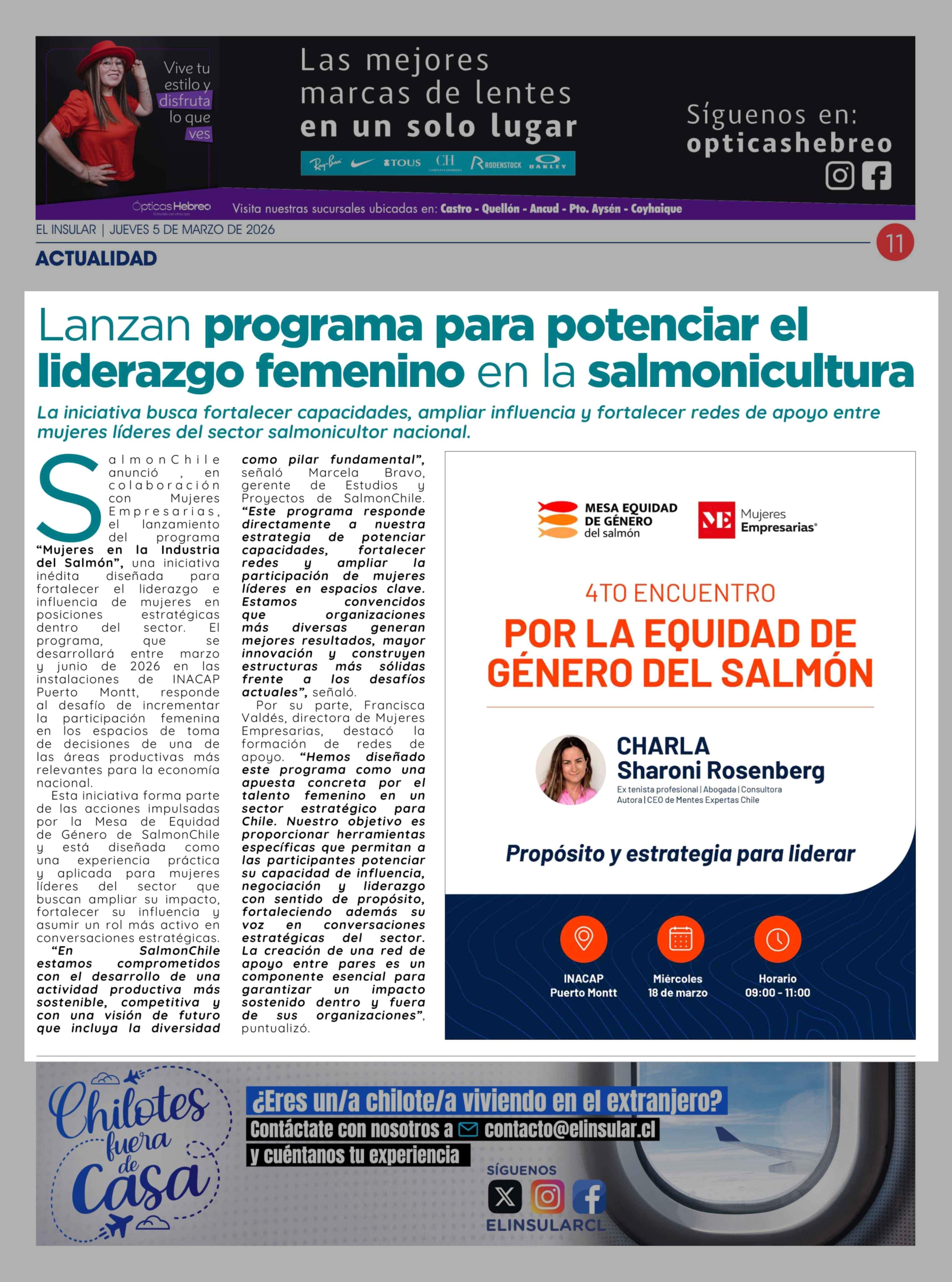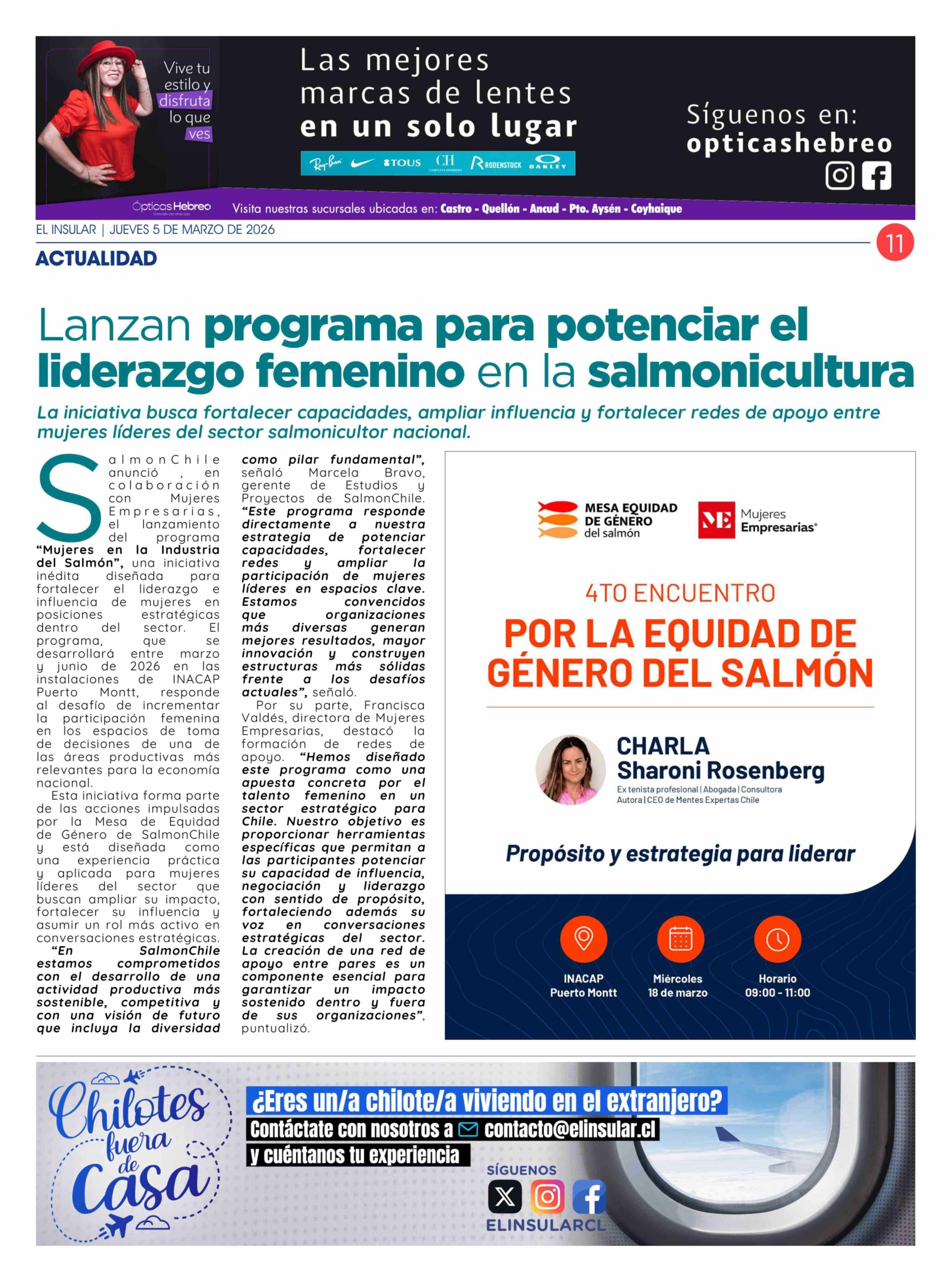 Lanzan programa para potenciar el liderazgo femenino en la salmonicultura 05-03-2026 El Insular |