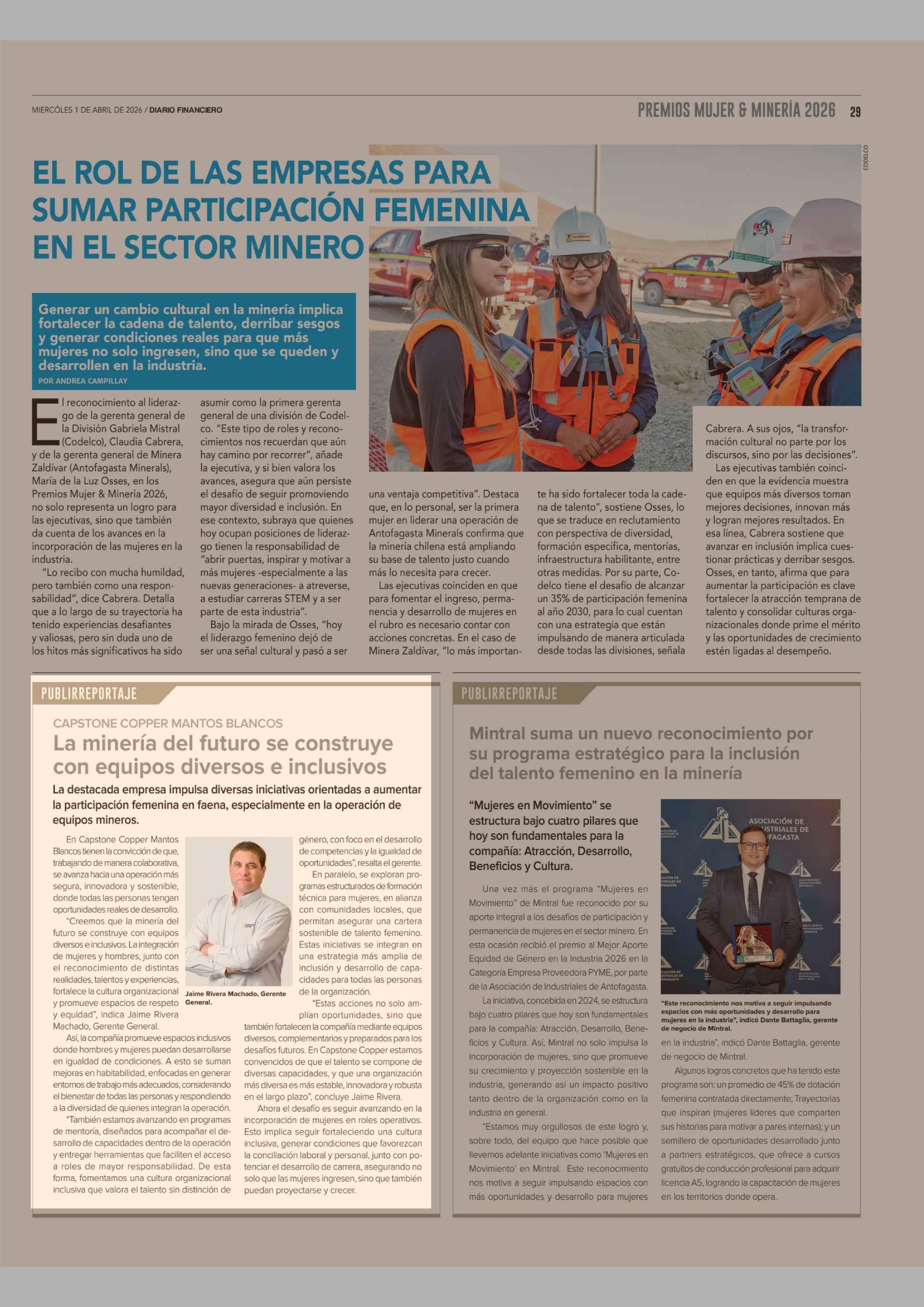 Título: Columnas de Opinión: La minería del futuro se construye con equipos diversos e inclusivos