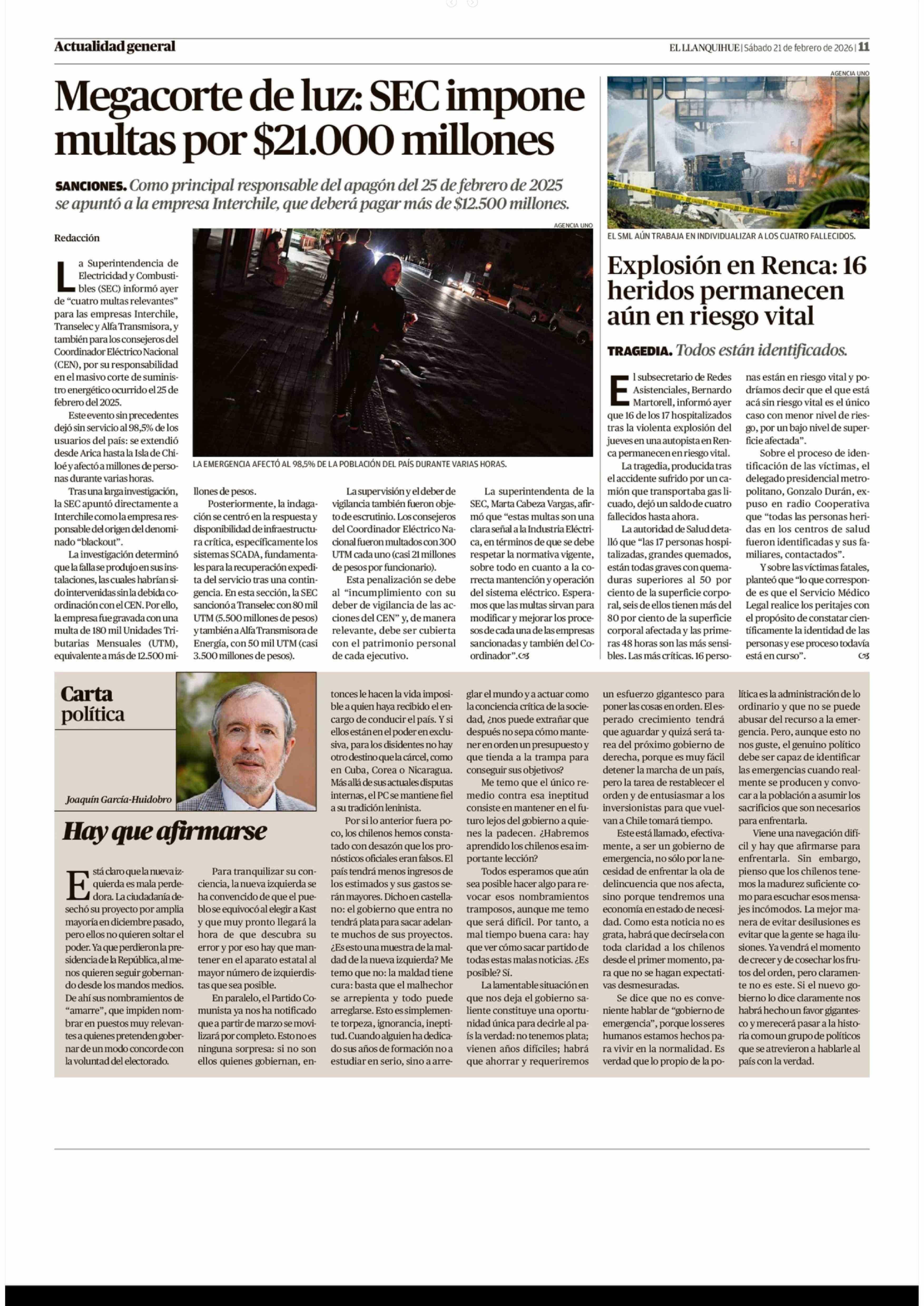 Explosión en Renca: 16 heridos permanecen aún en riesgo vital 21-02-2026 El Llanquihue |