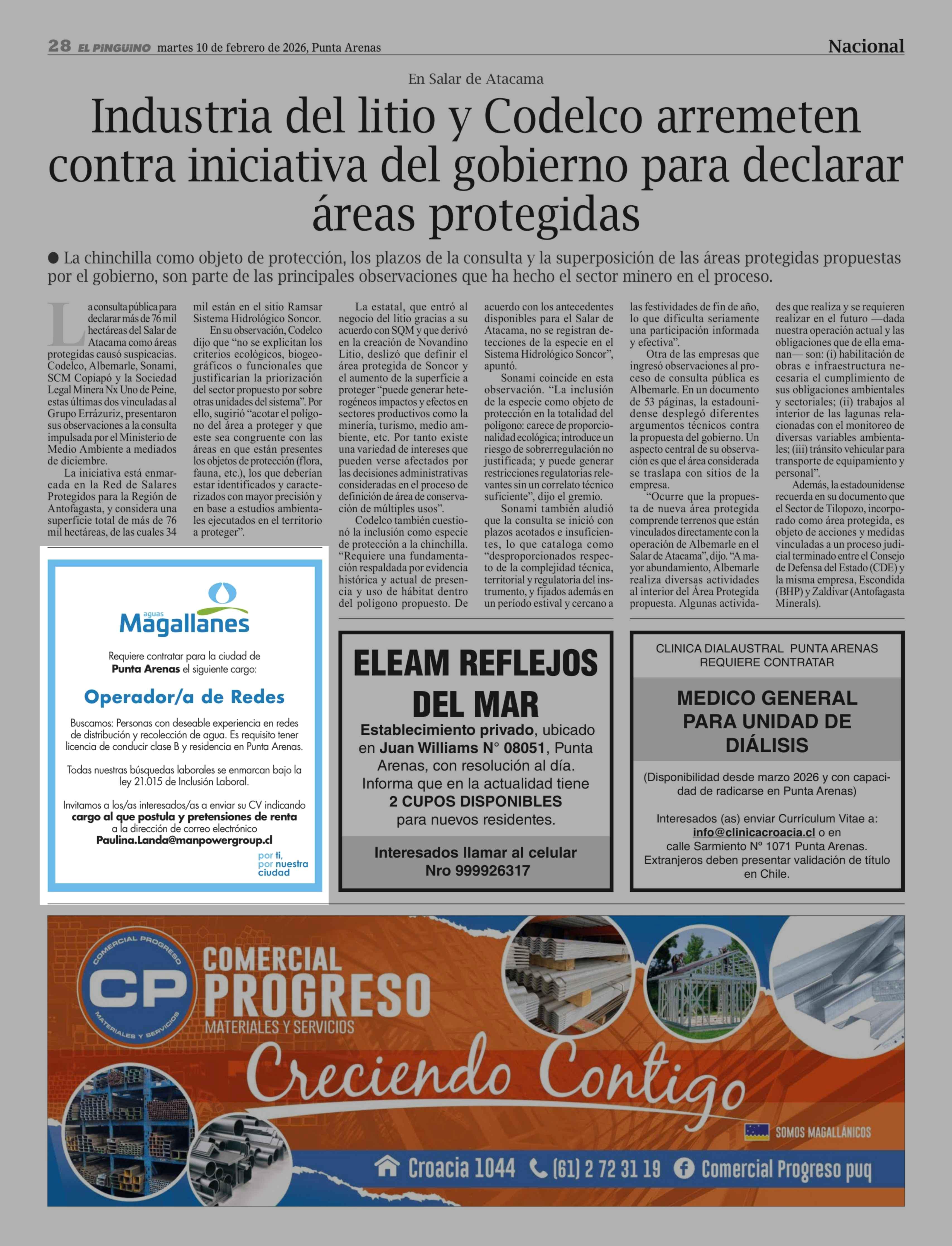 Aviso Empleo: Magallanes 10-02-2026 El Pingüino |