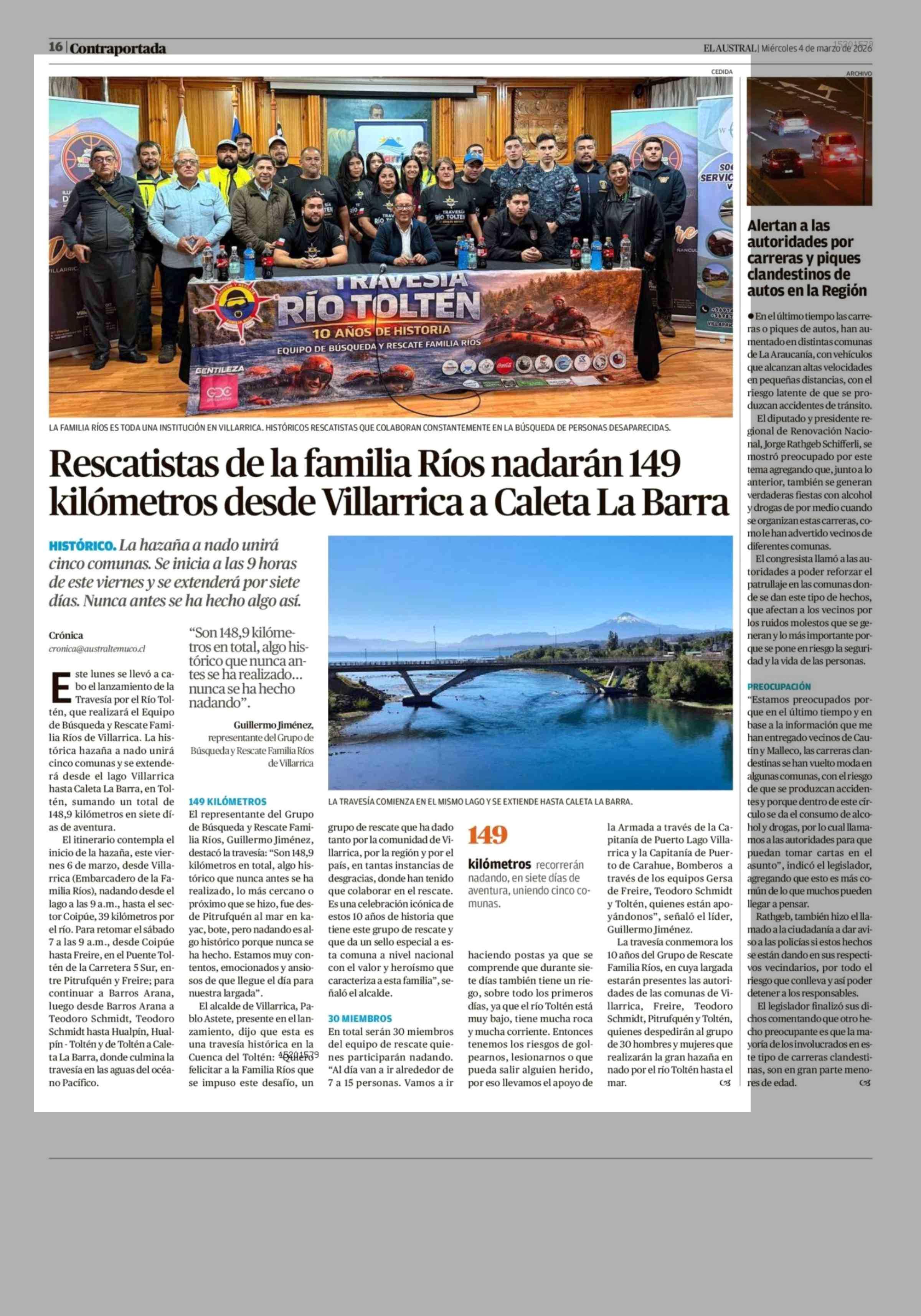 Título: Rescatistas de la familia Ríos nadarán 149 kilómetros desde Villarrica a Caleta La Barra