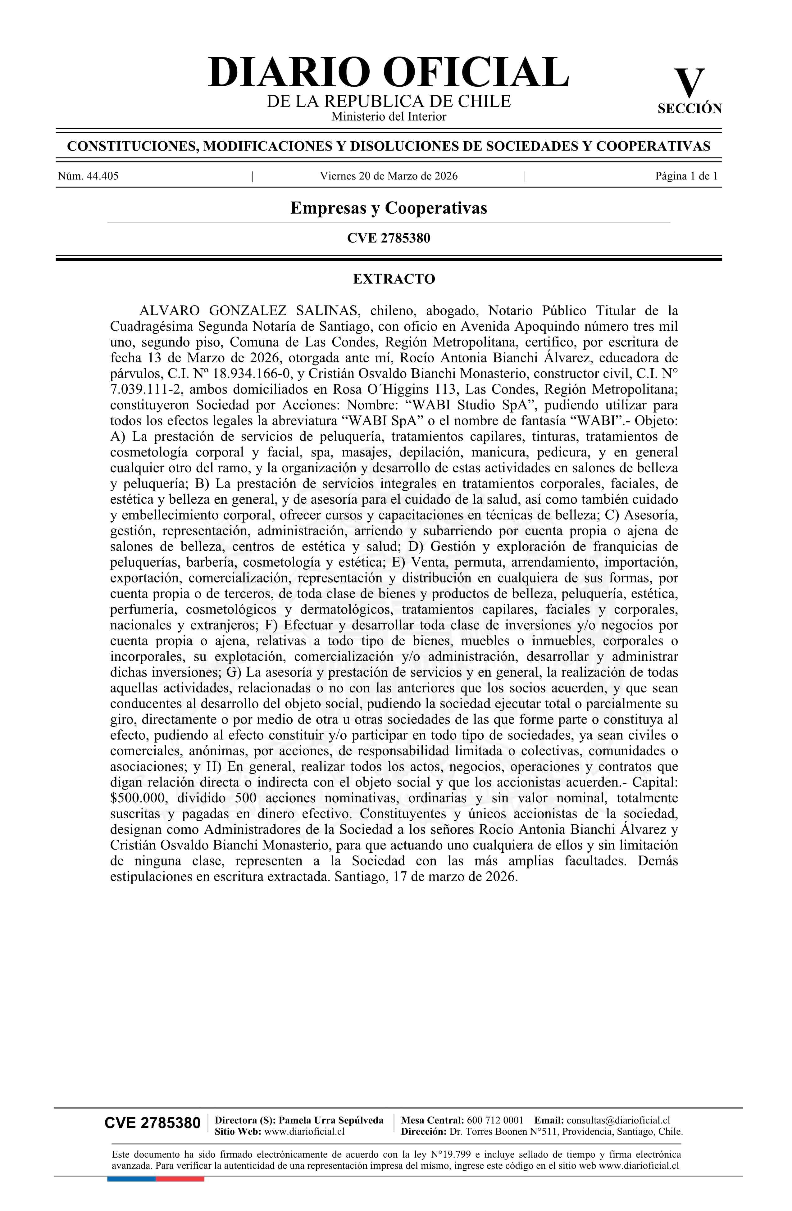 Wabi Studio SpA 20-03-2026 Diario Oficial Edición Electrónica |