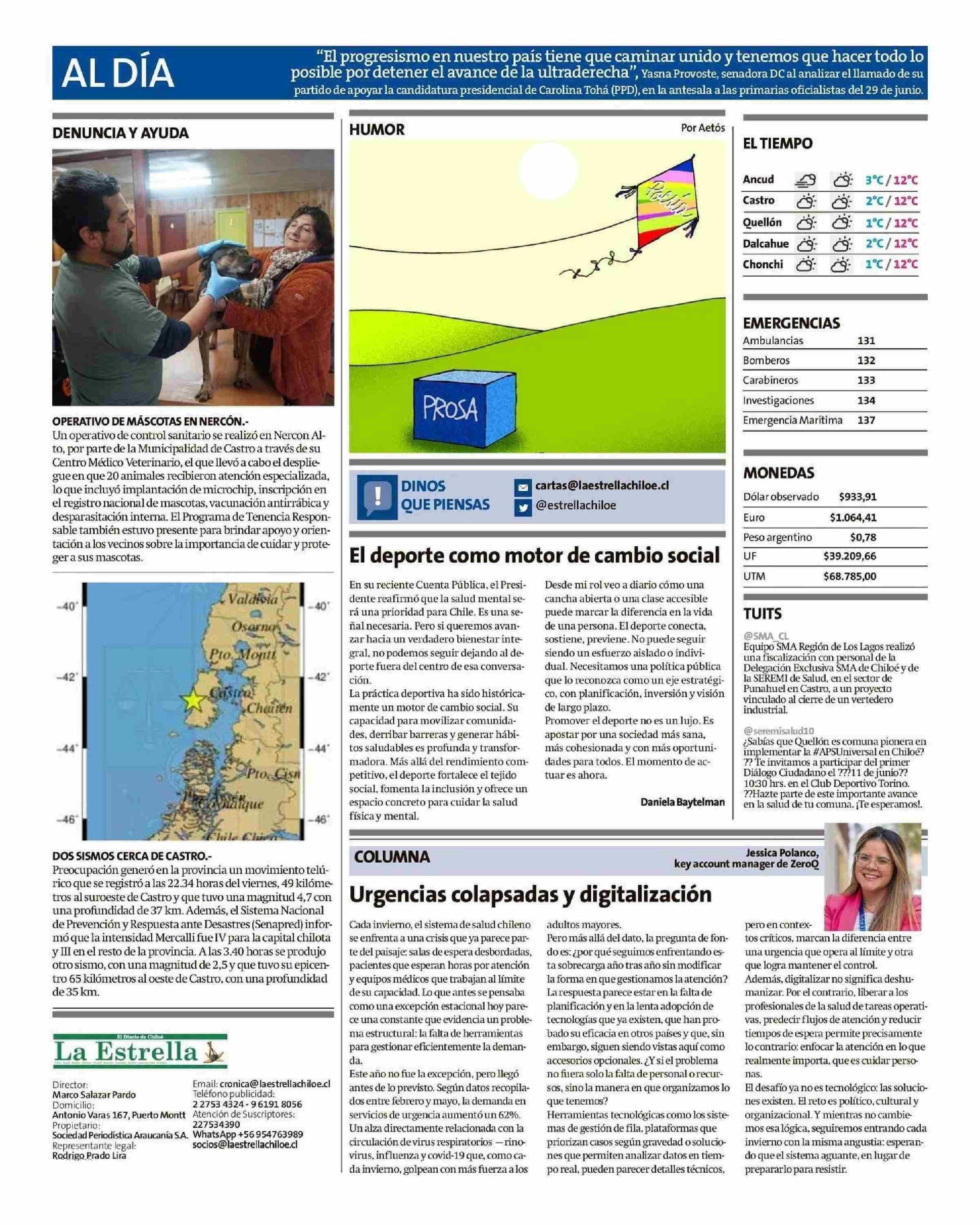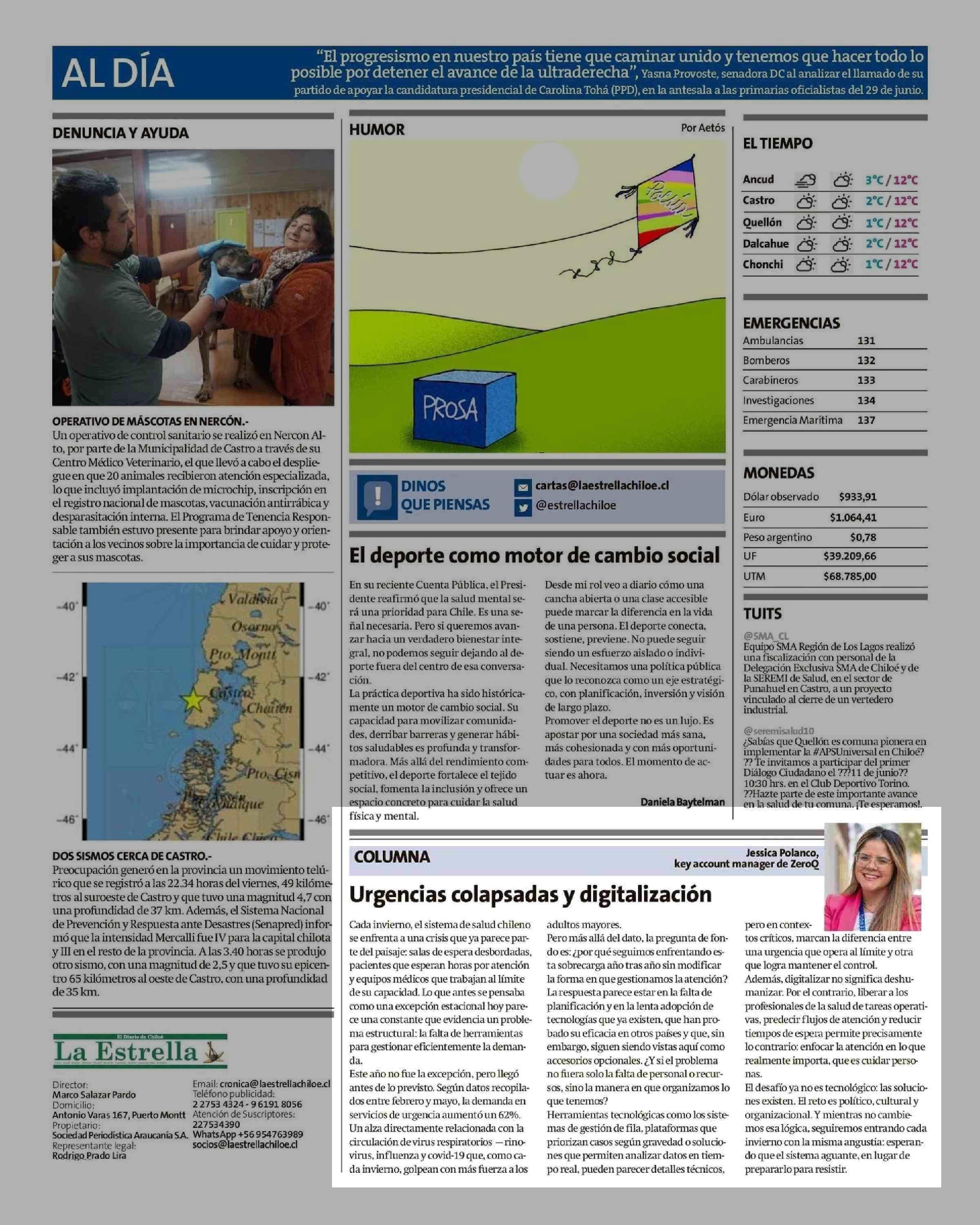 Columnas de Opinión: Urgencias colapsadas y digitalización 08-06-2025 La Estrella de Chiloé |