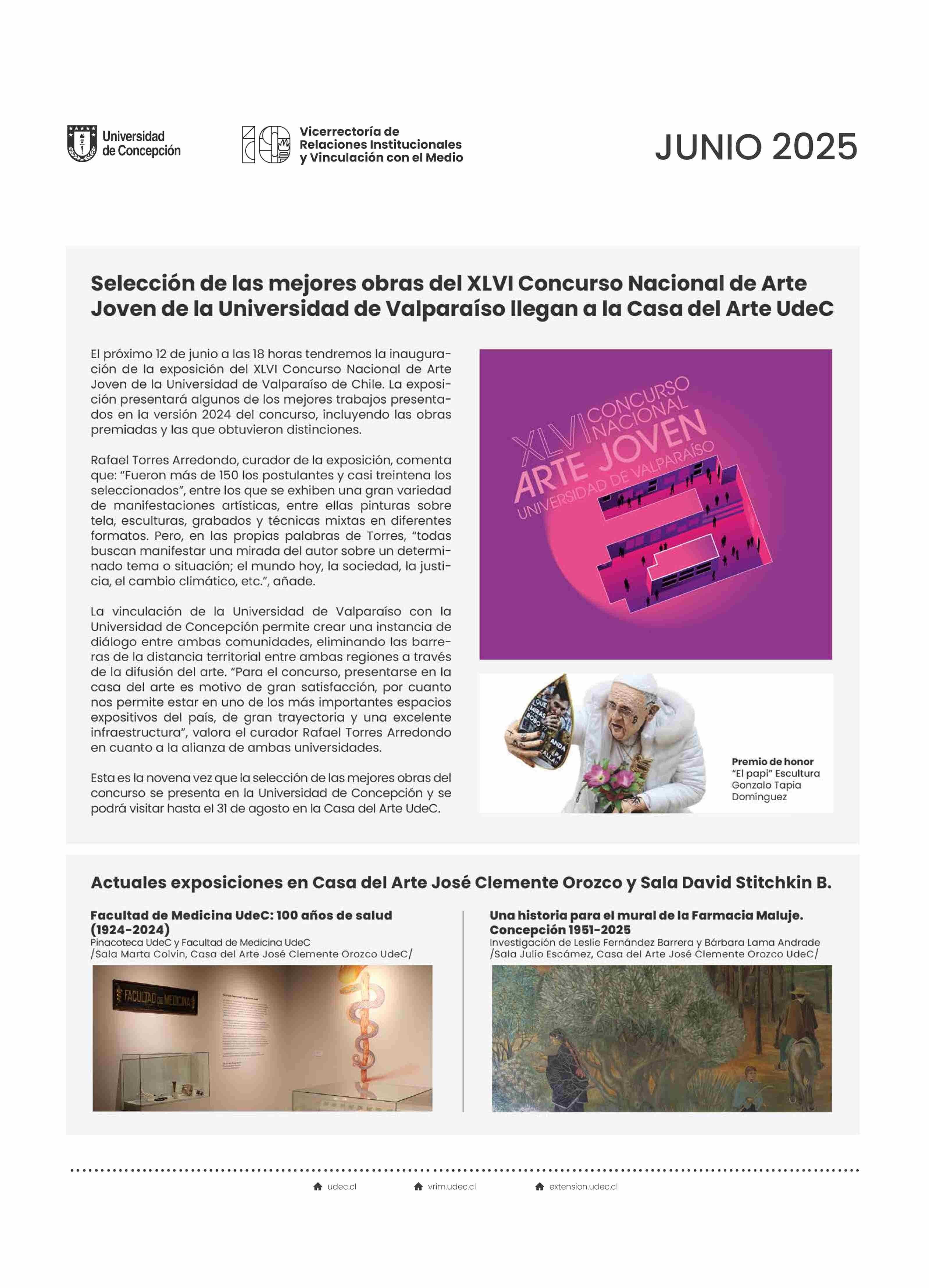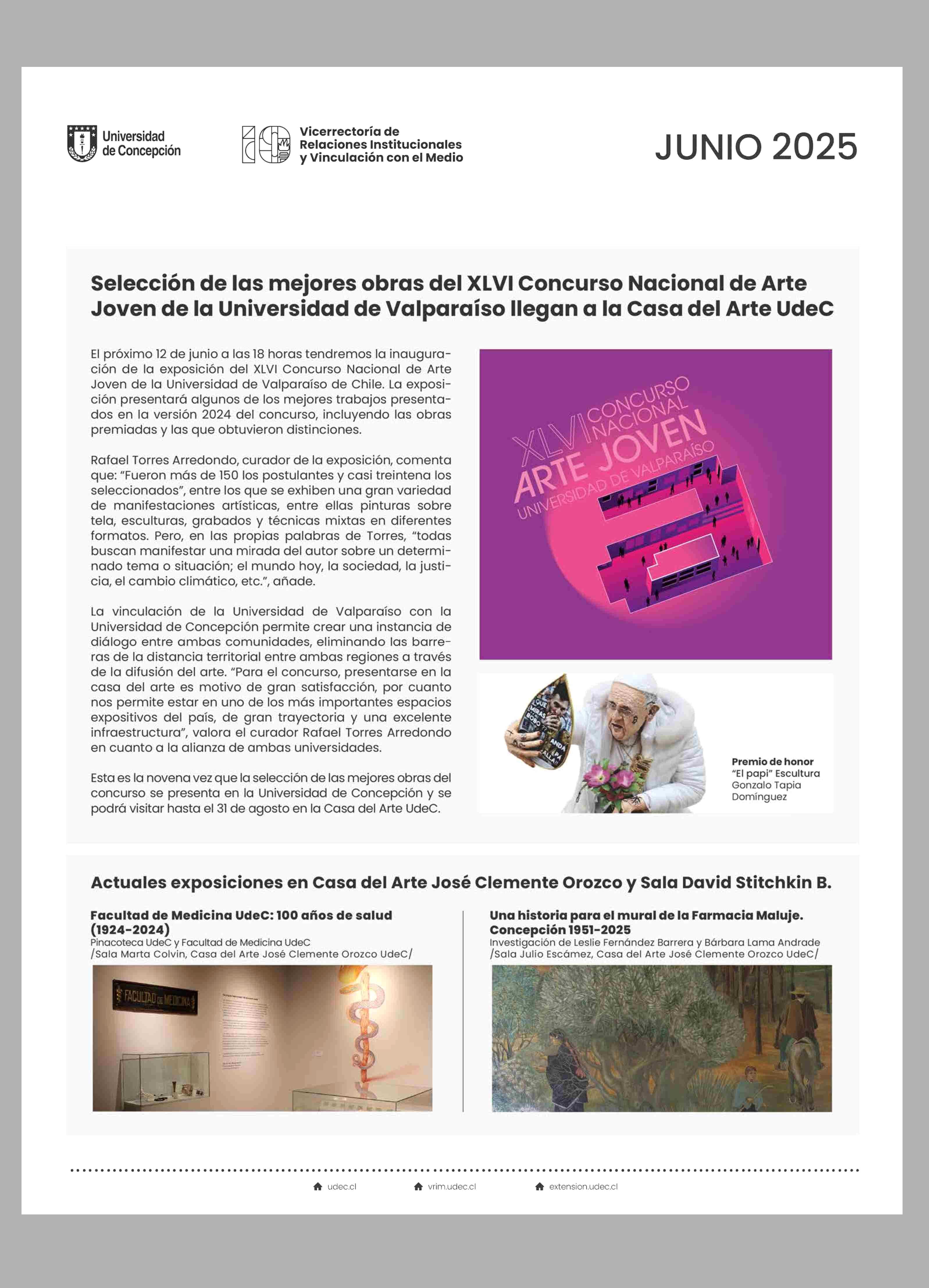 Selección de las mejores obras del XLVI Concurso Nacional de Arte Joven de la Universidad de Valparaíso llegan a la Casa del Arte UdeC 07-06-2025 Diario Concepción |