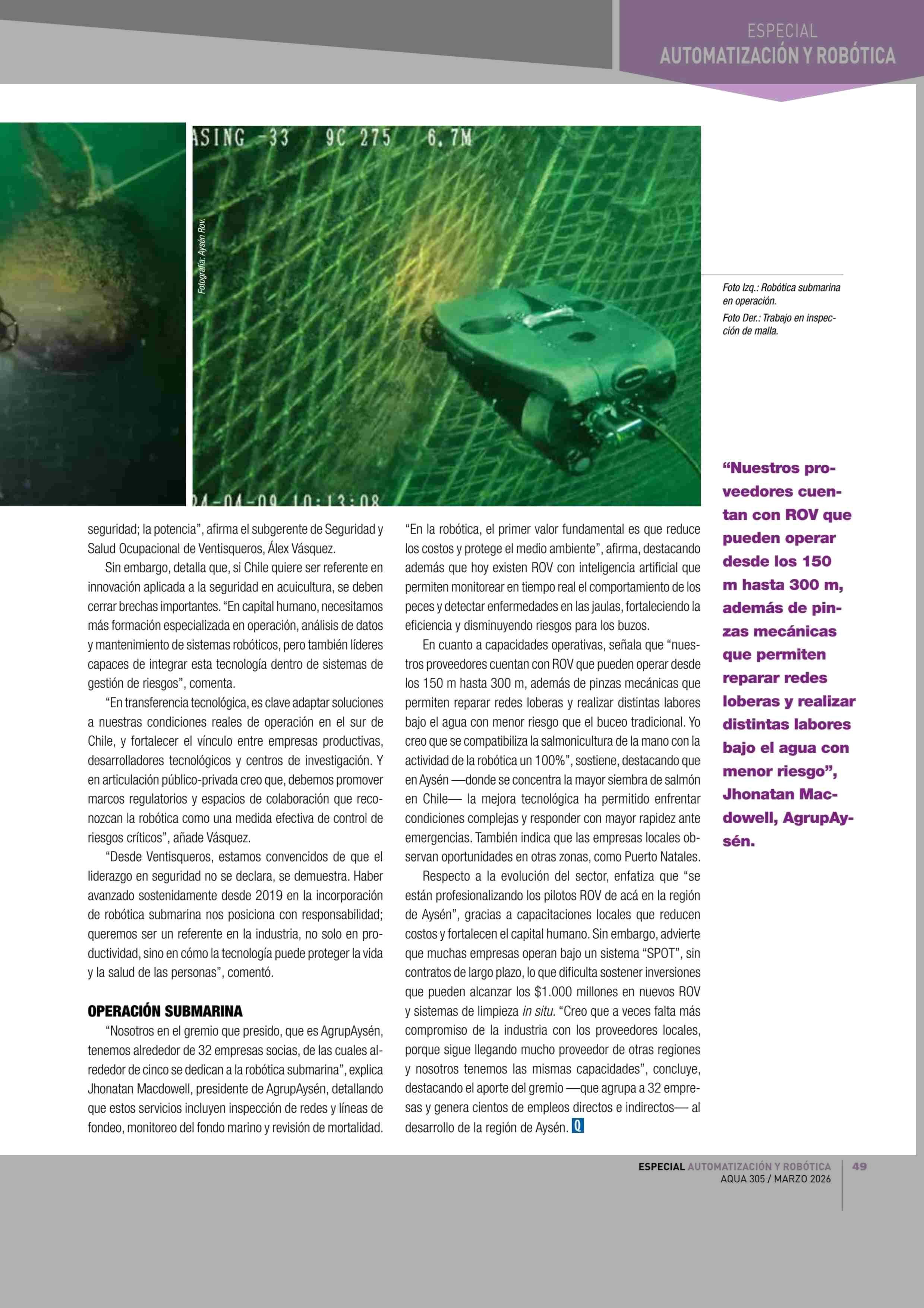Salmonicultura en Chile Avanzando en robótica submarina 12-03-2026 Revista Aqua |