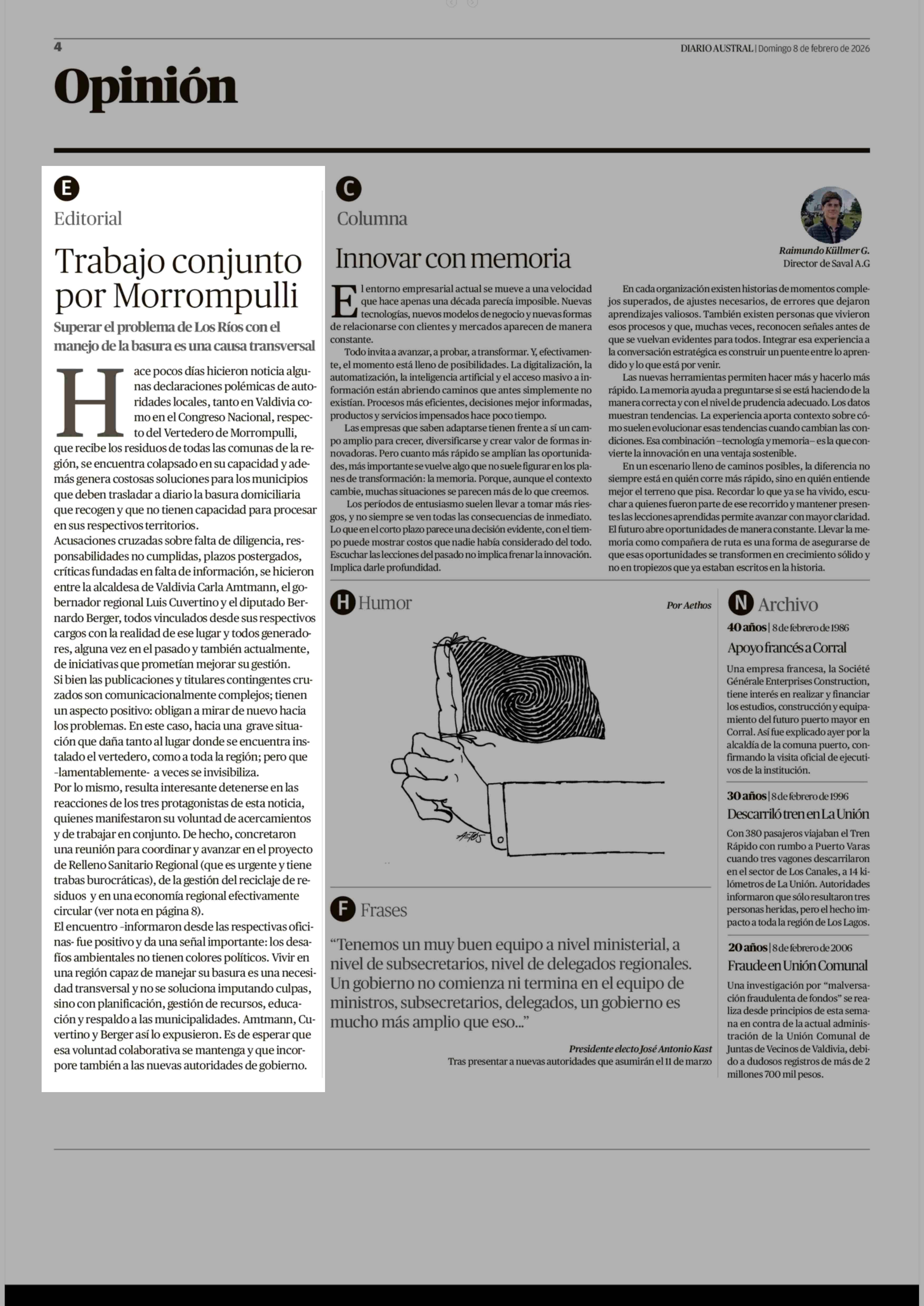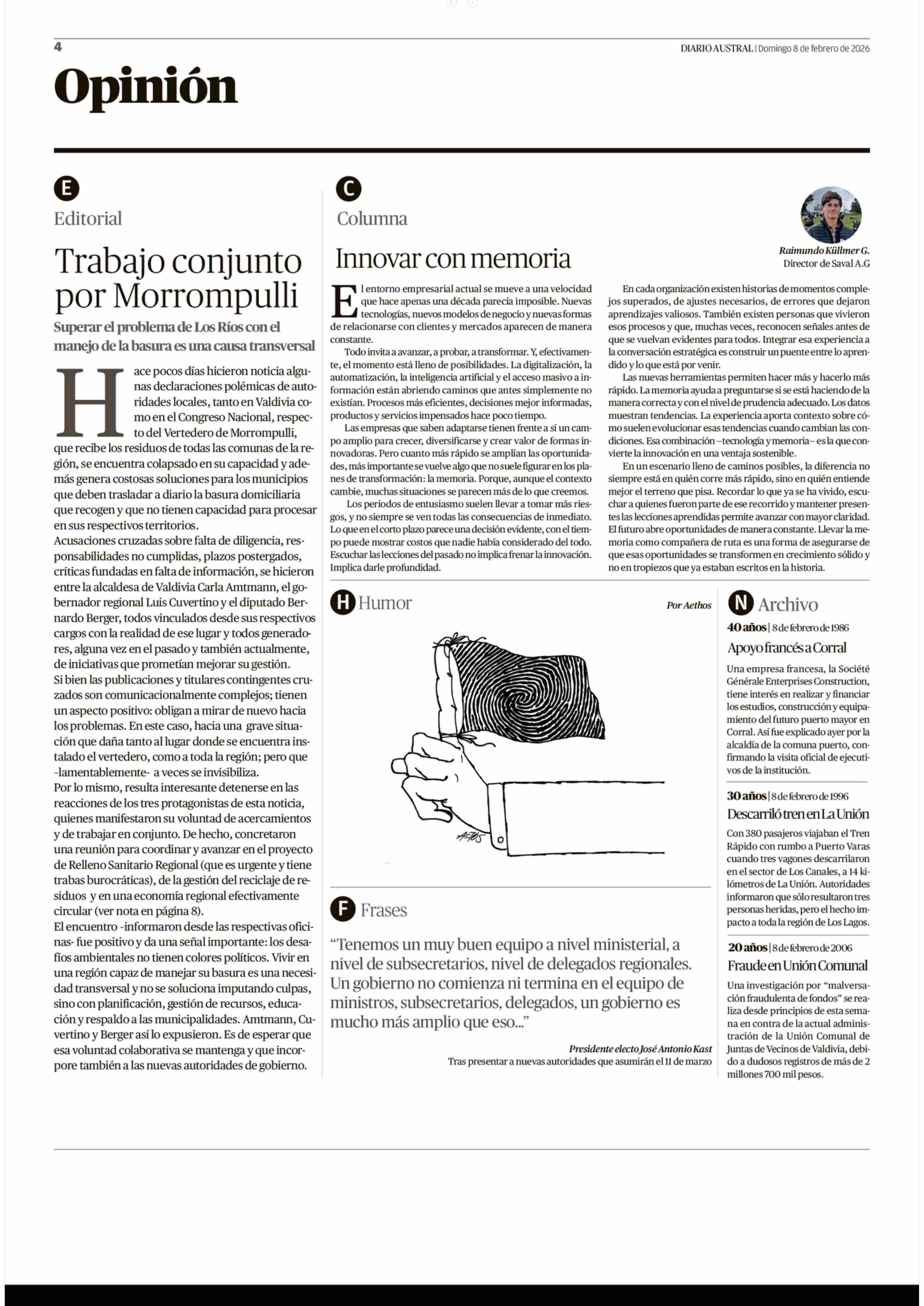 | Fecha: | 08-02-2026 | Sector: | Editorial | Región: | Región de Los Ríos |