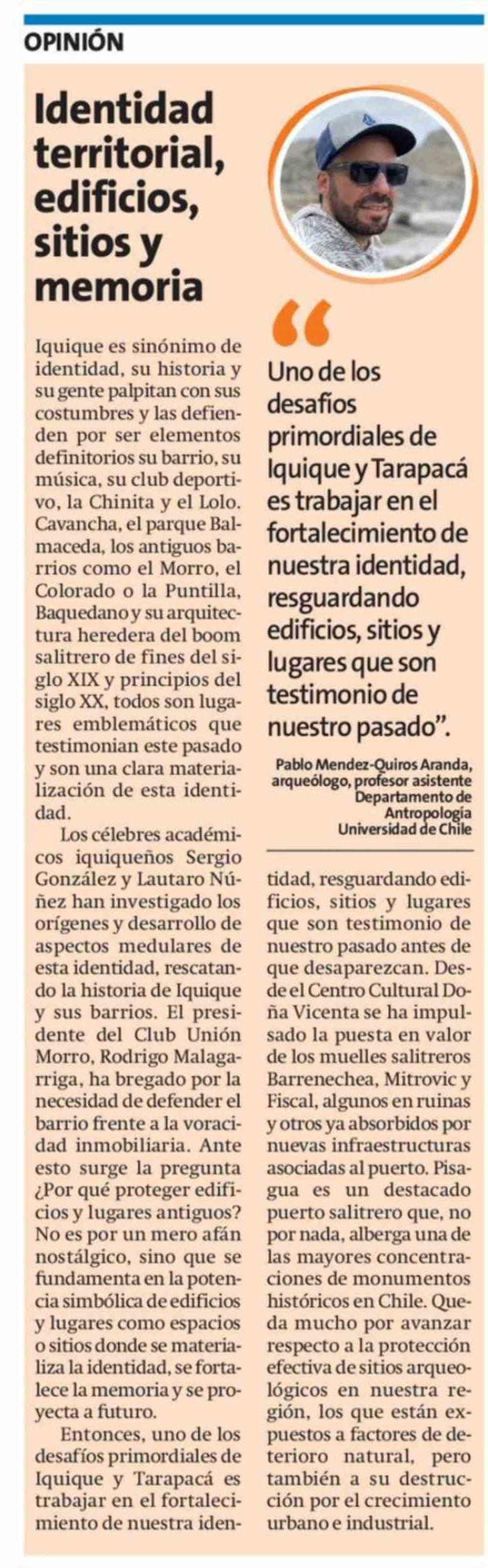 Título: Columnas de Opinión: Identidad territorial, edificios, sitios y memoria