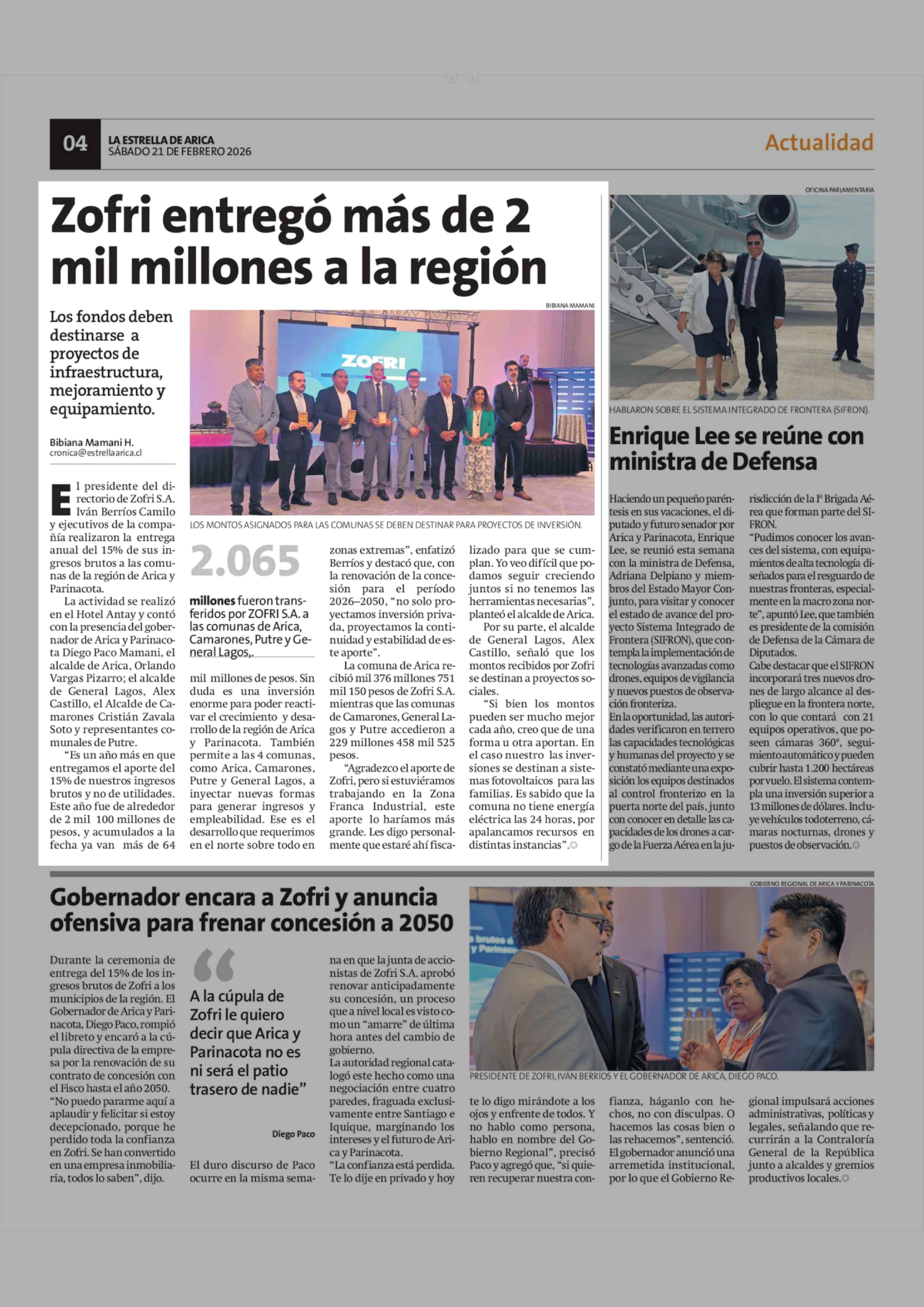 Fecha: 21-02-2026 Sector: Noticia general Región: Región de Arica y Parinacota