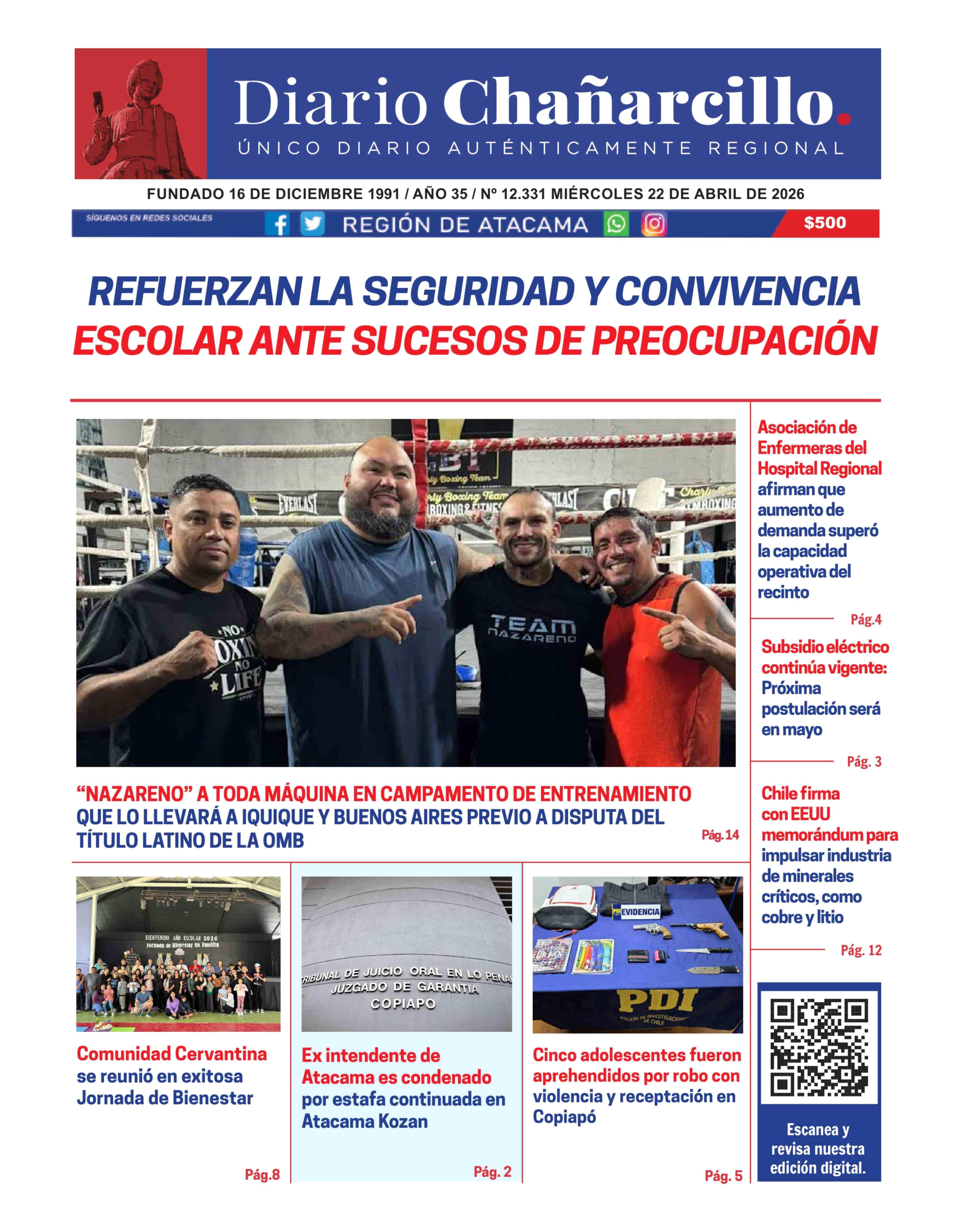 | Fecha: | 22-04-2026 | Sector: | Portada | Región: | Región de Atacama |