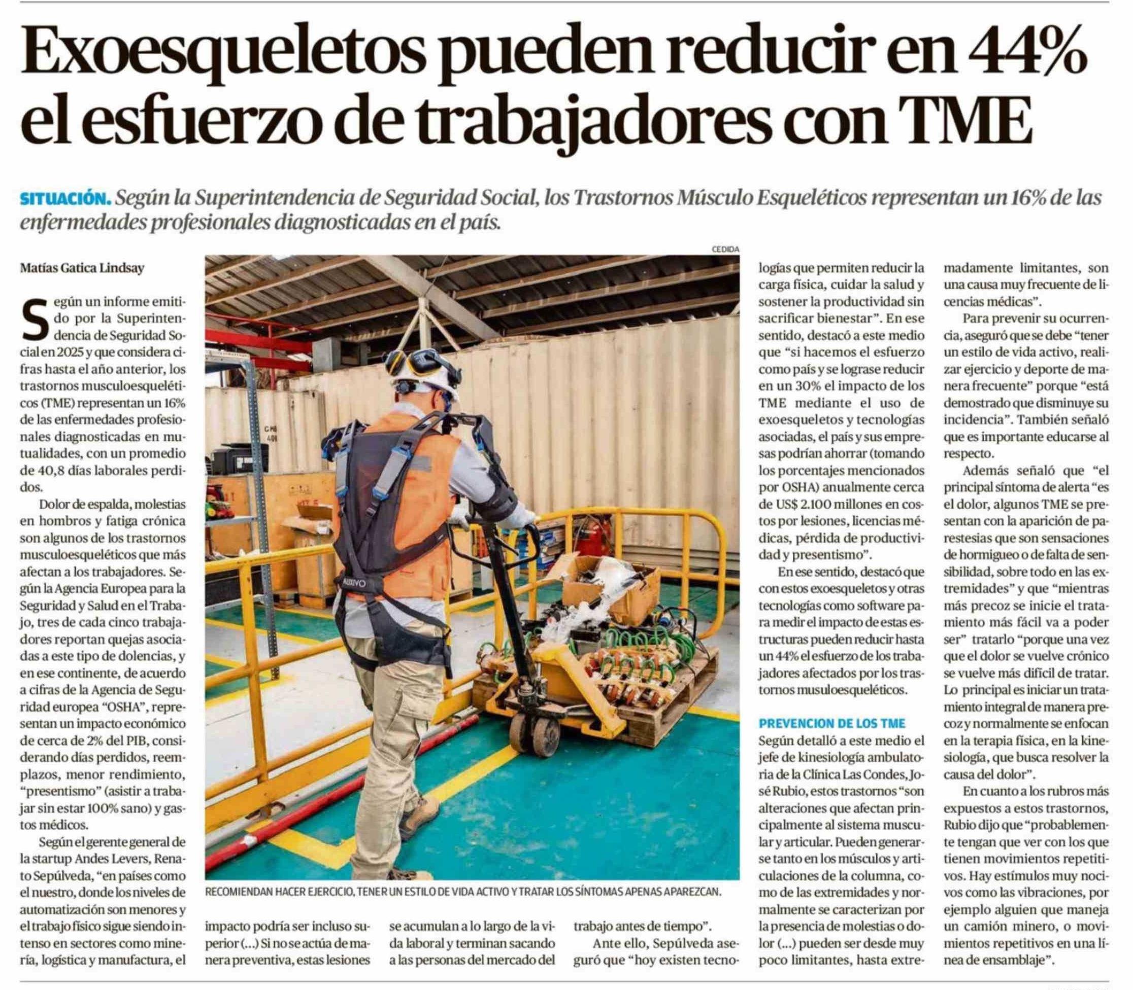 Exoesqueletos pueden reducir en 44% el esfuerzo de trabajadores con TME 09-02-2026 El Llanquihue |
