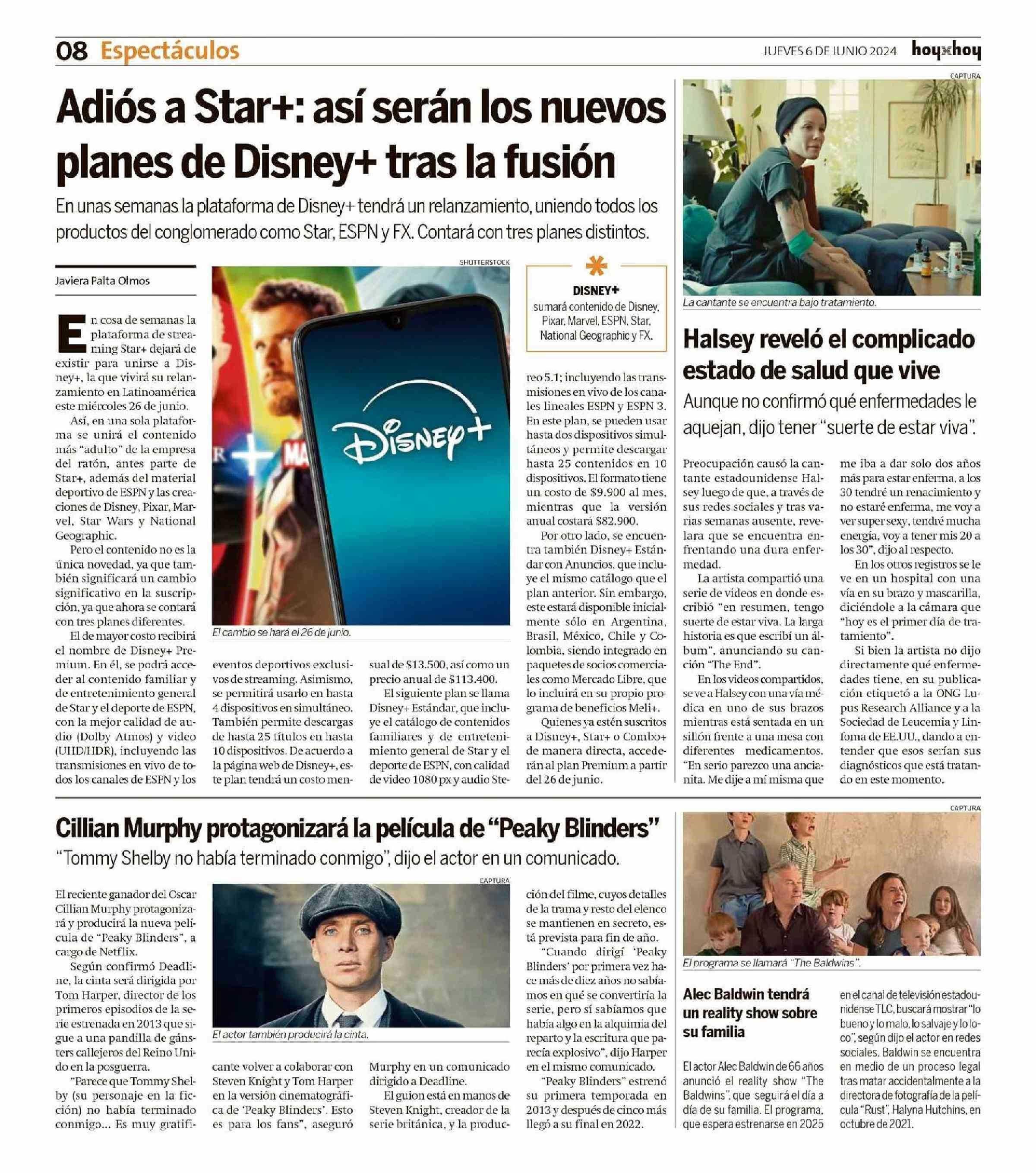 Adiós a Star+: así serán los nuevos planes de Disney+ tras la fusión 06-06-2024 Hoy x Hoy |