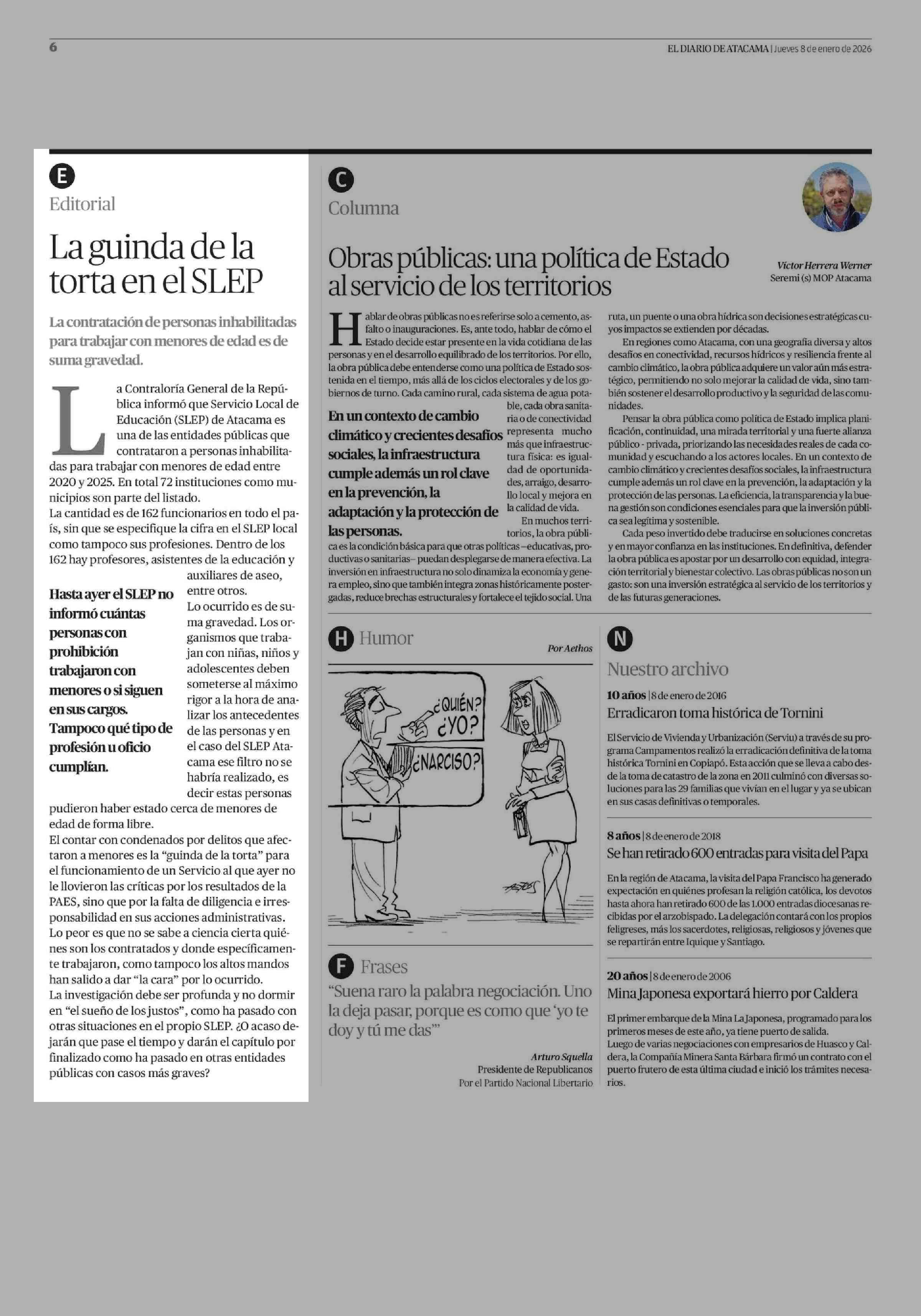 Editorial: La guinda de la torta en el SLEP 08-01-2026 El Diario de Atacama |