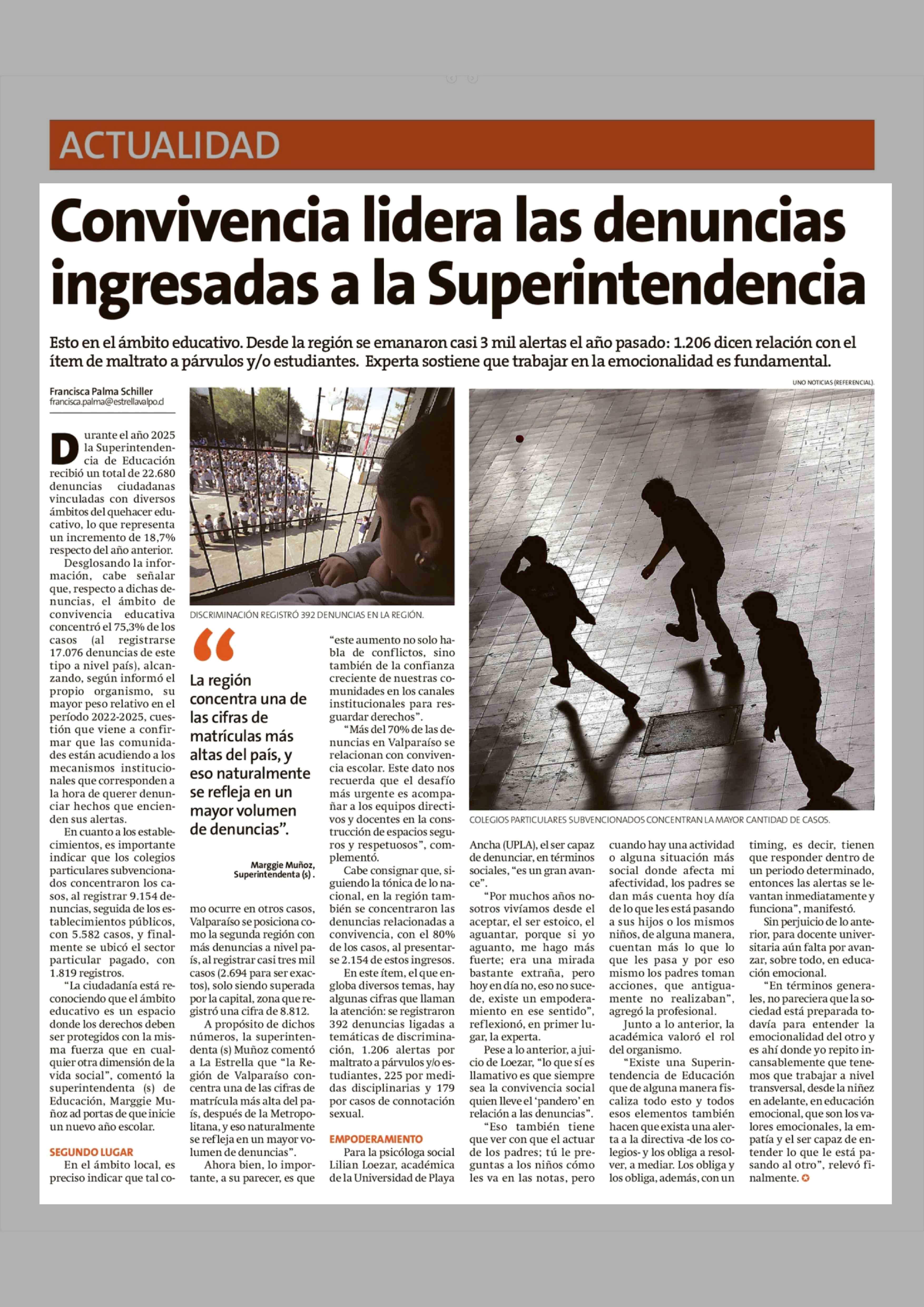 Convivencia lidera las denuncias ingresadas a la Superintendencia 12-02-2026 La Estrella de Valparaíso |