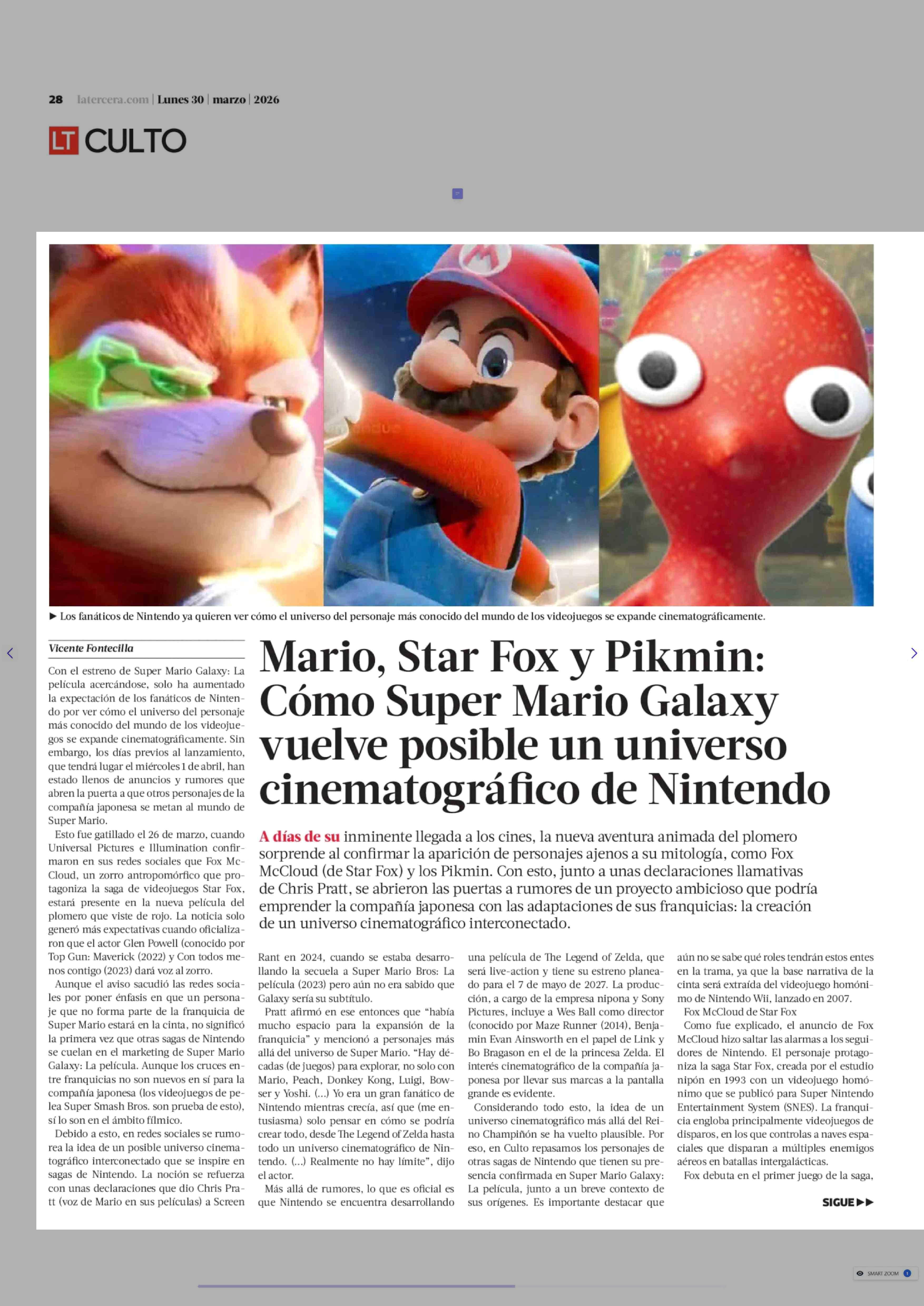 Título: Mario, Star Fox y Pikmin: Cómo Super Mario Galaxy vuelve posible un universo cinematográfico de Nintendo