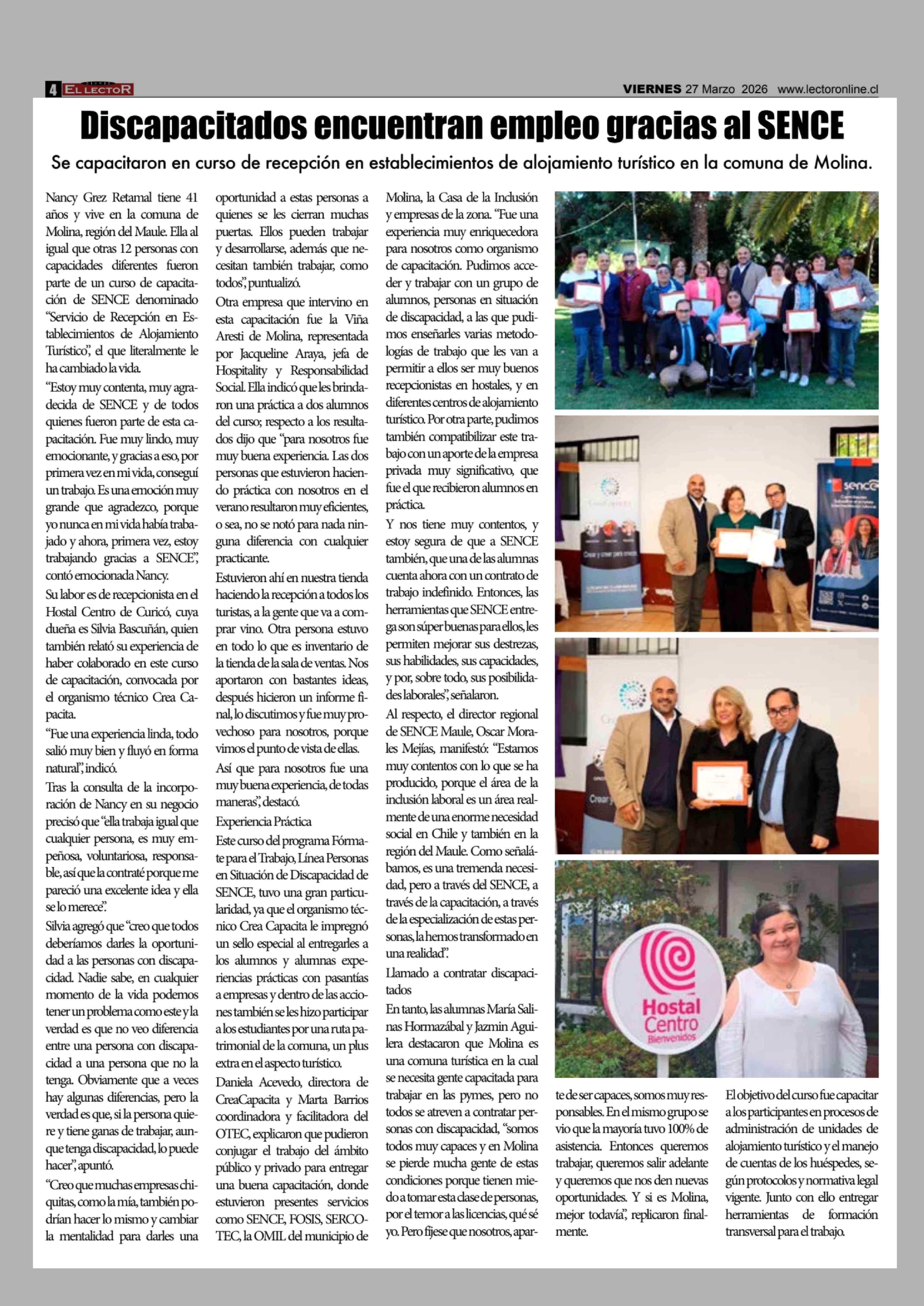 Discapacitados encuentran empleo gracias al SENCE 27-03-2026 El Lector |