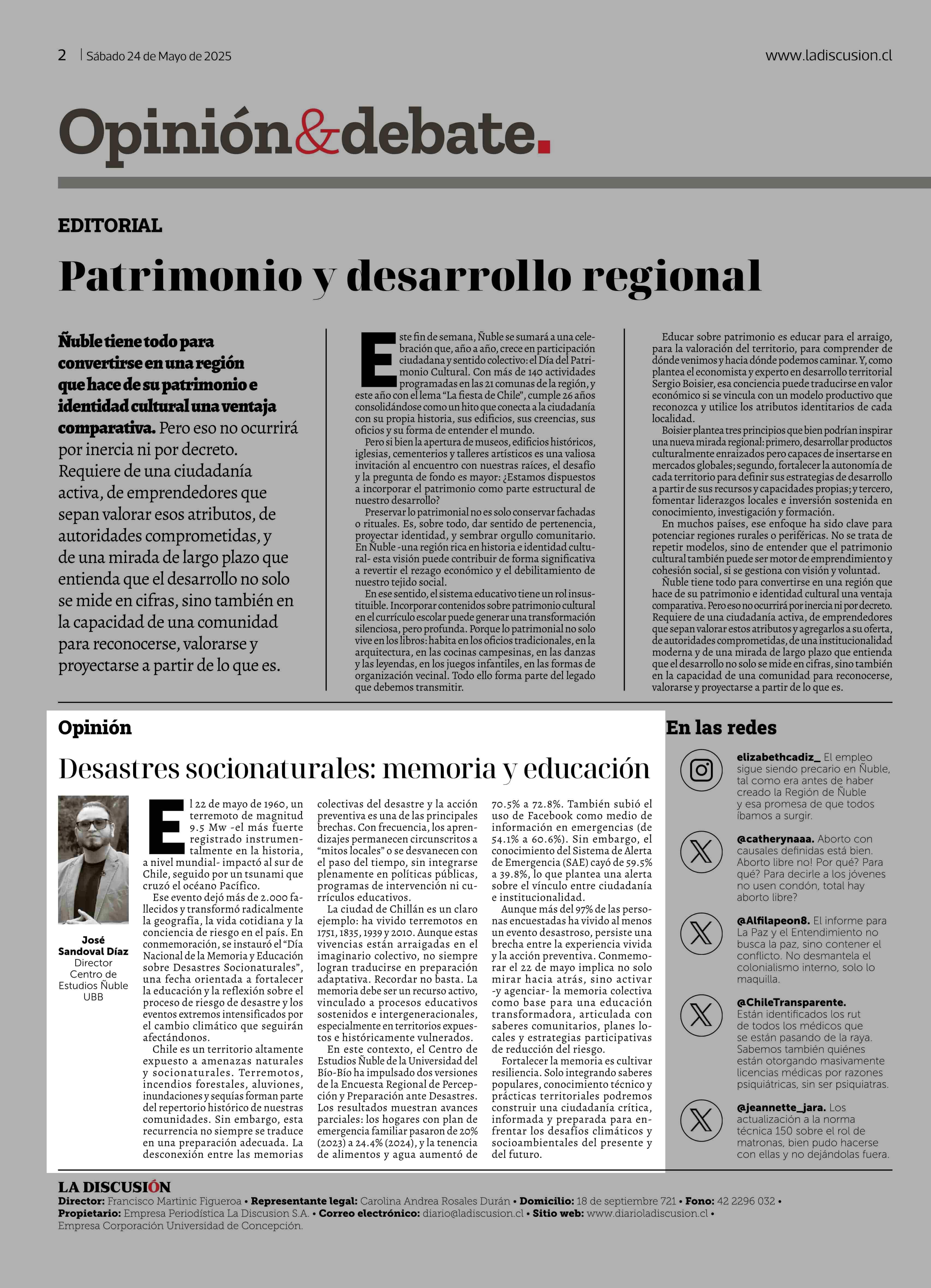Columnas de Opinión: Desastres socionaturales: memoria y educación 24-05-2025 La Discusión |