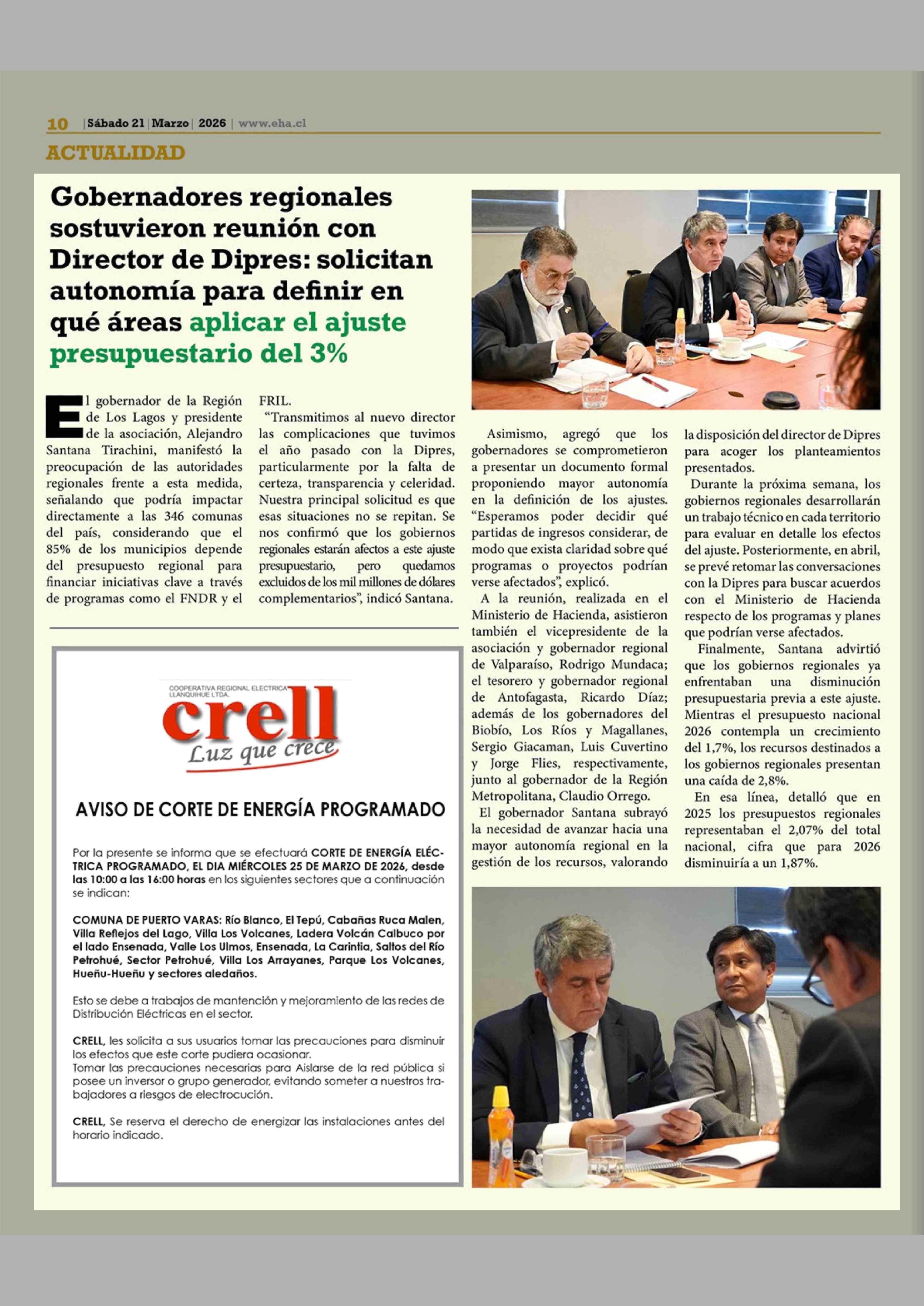 Título: Gobernadores regionales sostuvieron reunión con Director de Dipres: solicitan autonomía para definir en qué áreas aplicar el ajuste presupuestario del 3%