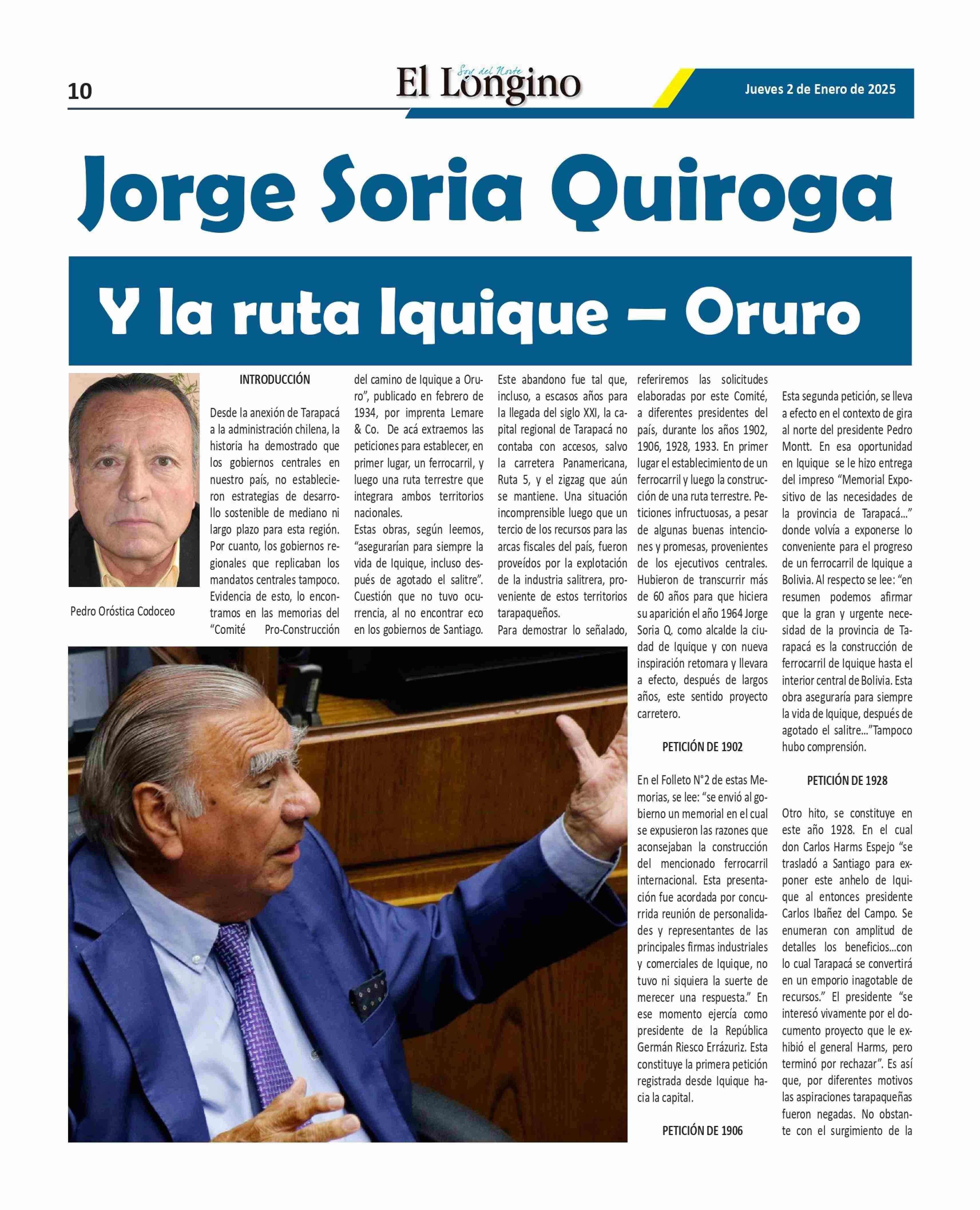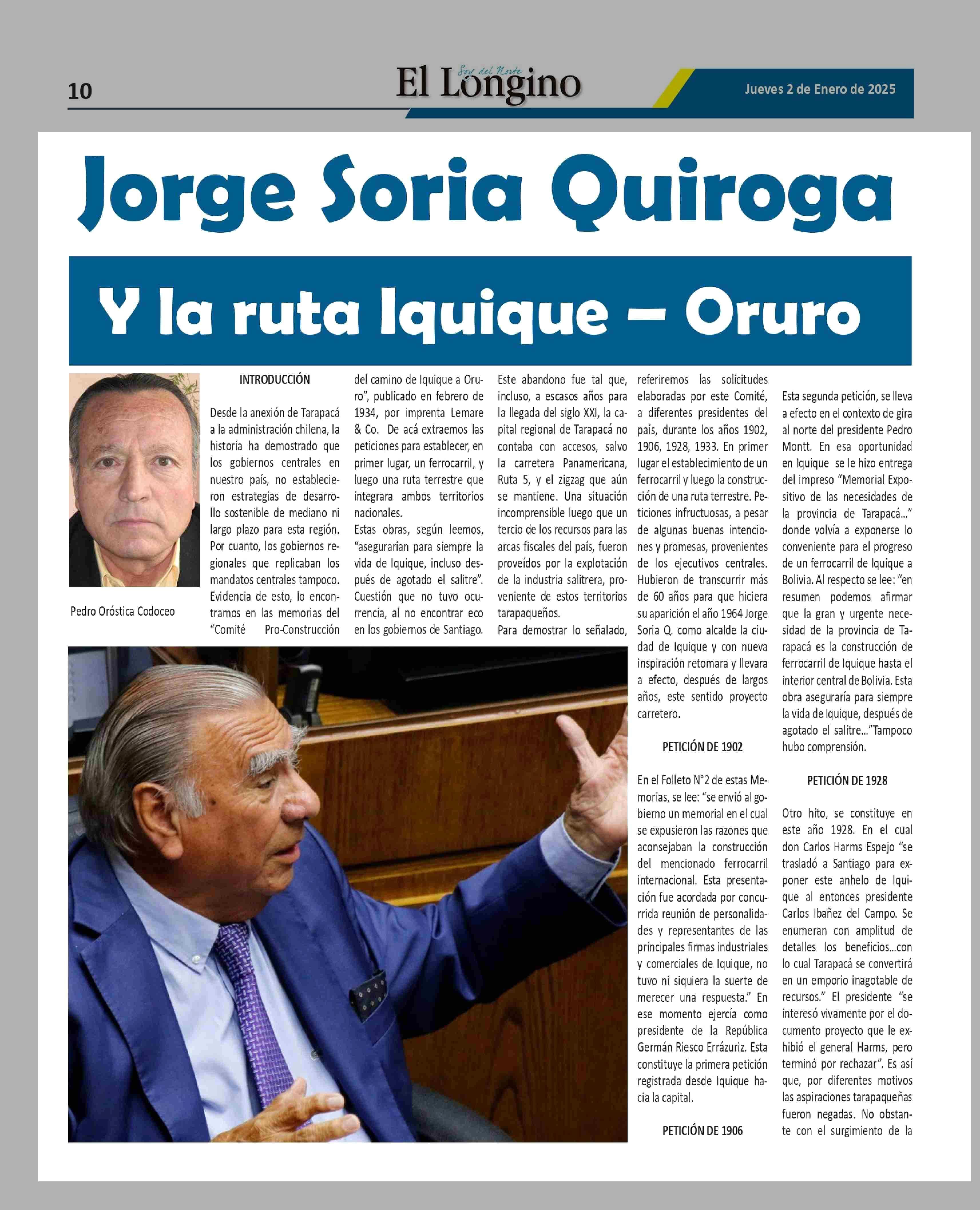 Jorge Soria Quiroga y la ruta Iquique-Oruro 02-01-2025 El Longino |