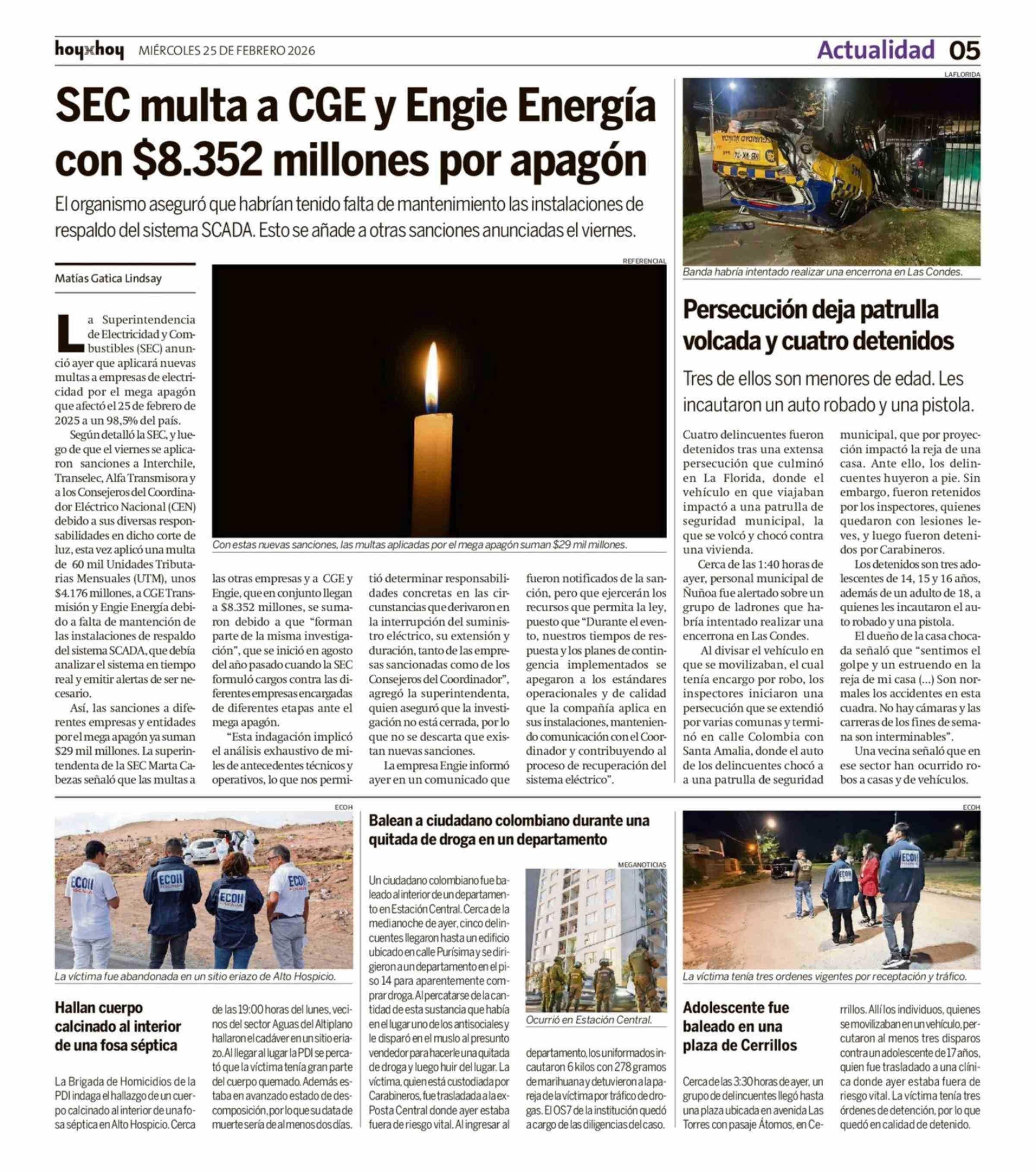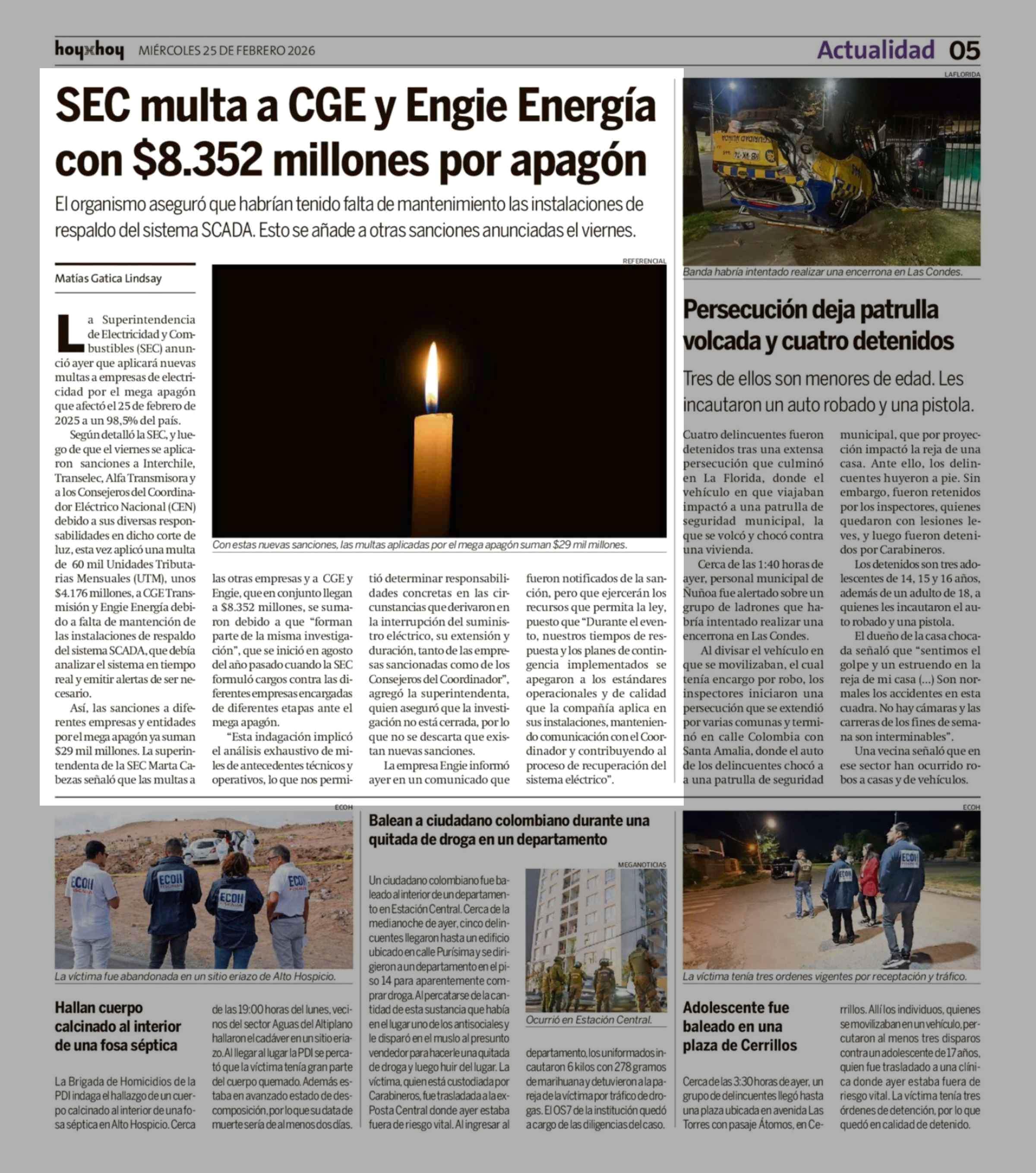 Título: SEC multa a CGE y Engie Energía con $8.352 millones por apagón