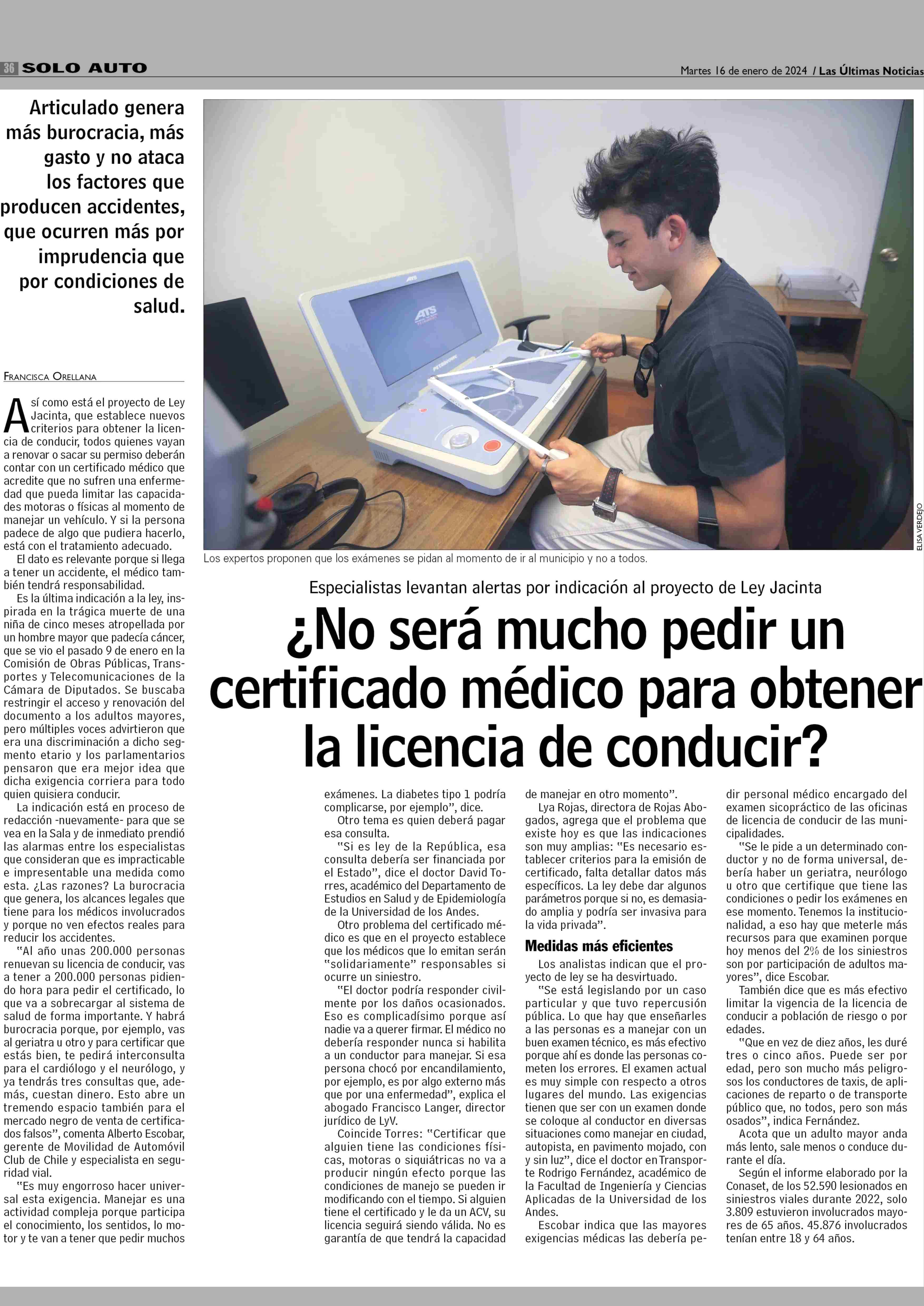¿No será mucho pedir un certificado médico para obtener la licencia de conducir? 16-01-2024 Las Últimas Noticias |