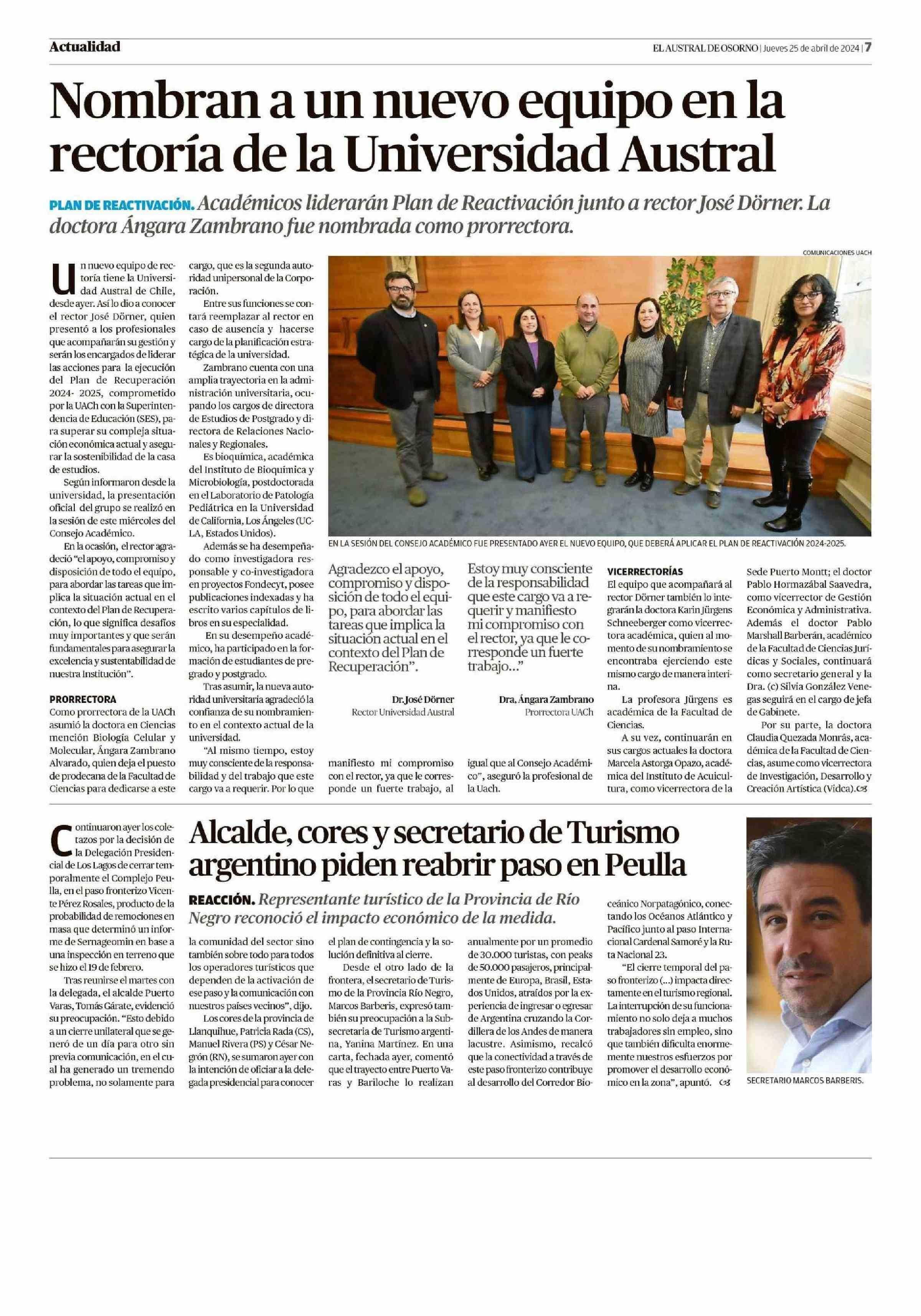 Nombran a un nuevo equipo en la rectoría de la Universidad Austral 25-04-2024 El Austral de Osorno |
