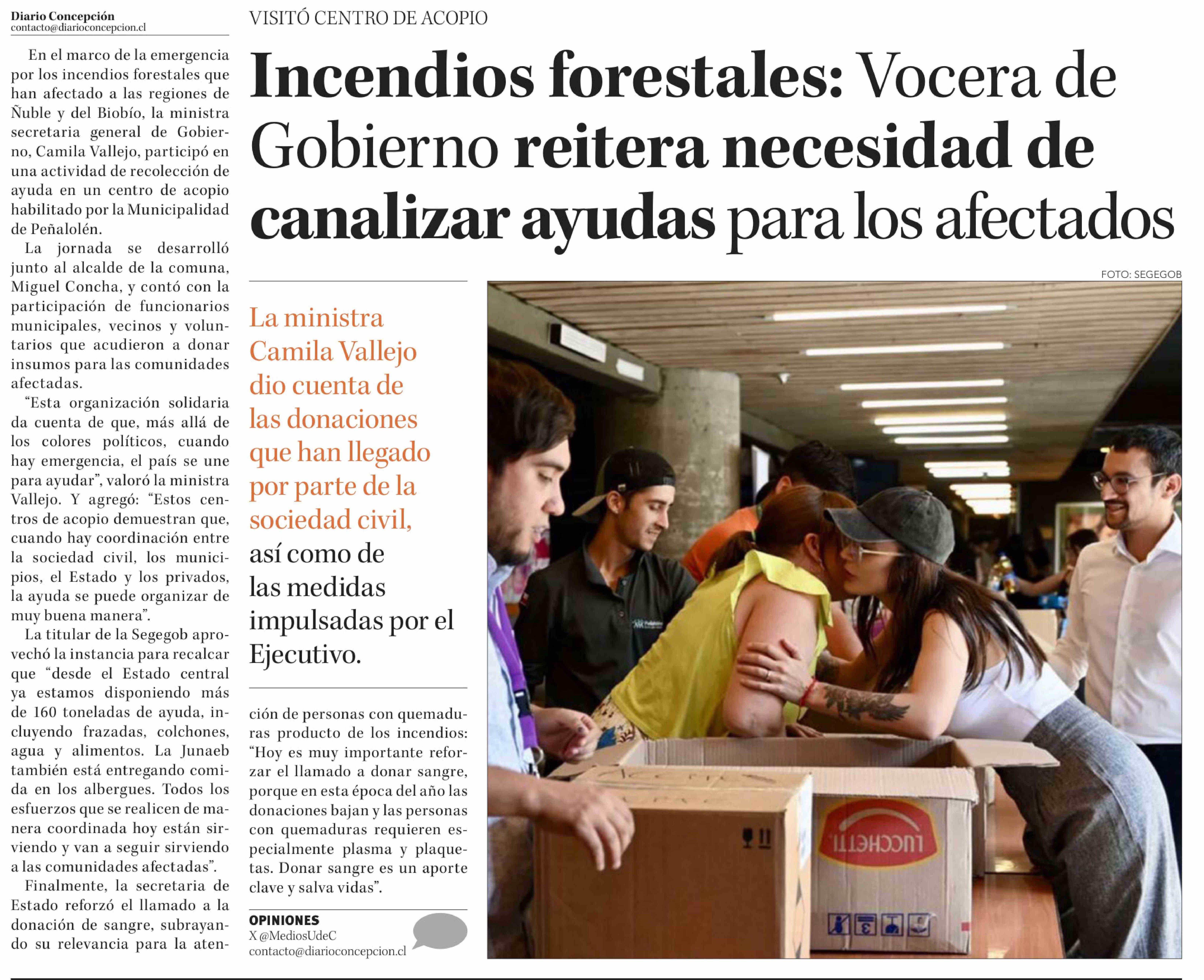 Incendios forestales: Vocera de Gobierno reitera necesidad de canalizar ayudas para los afectados 02-02-2026 Diario Concepción |